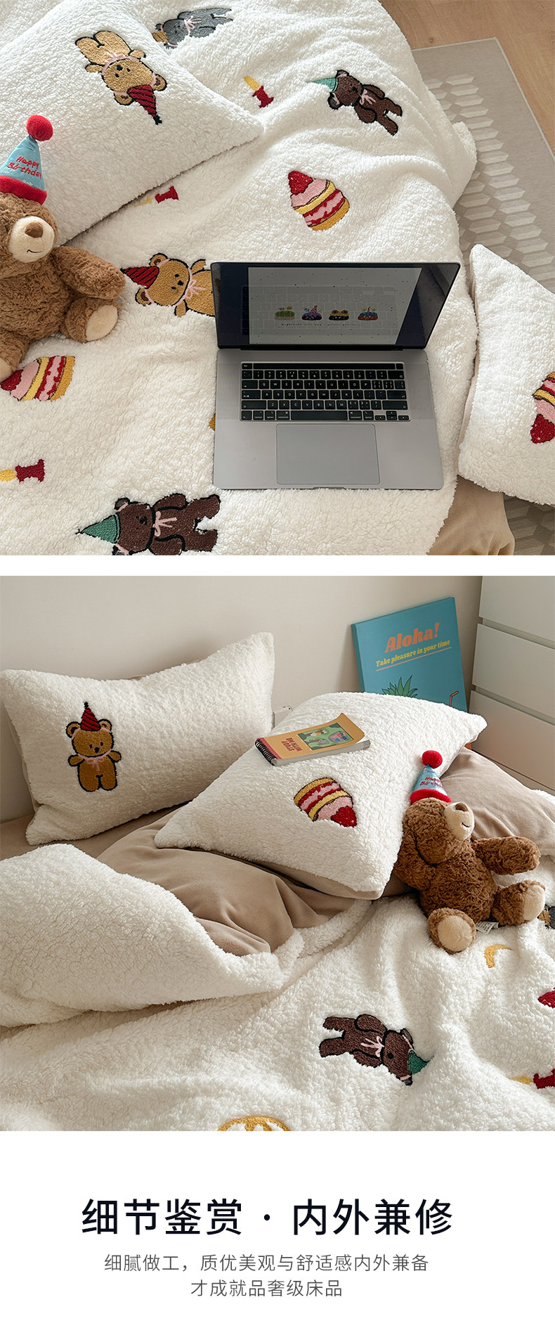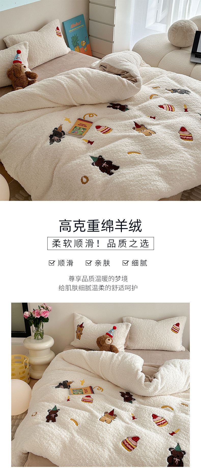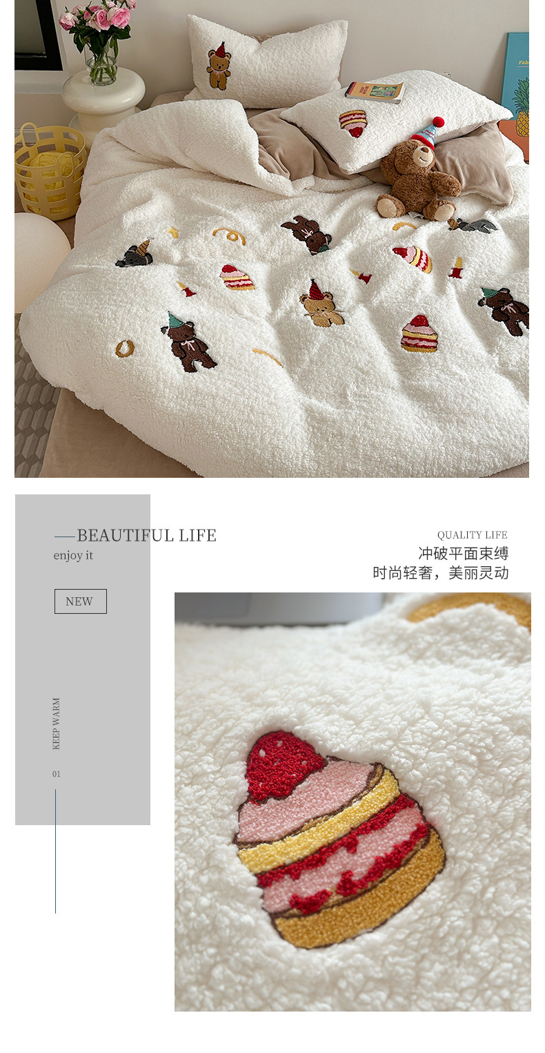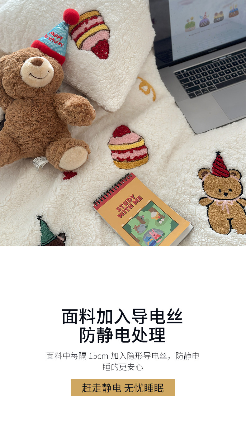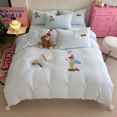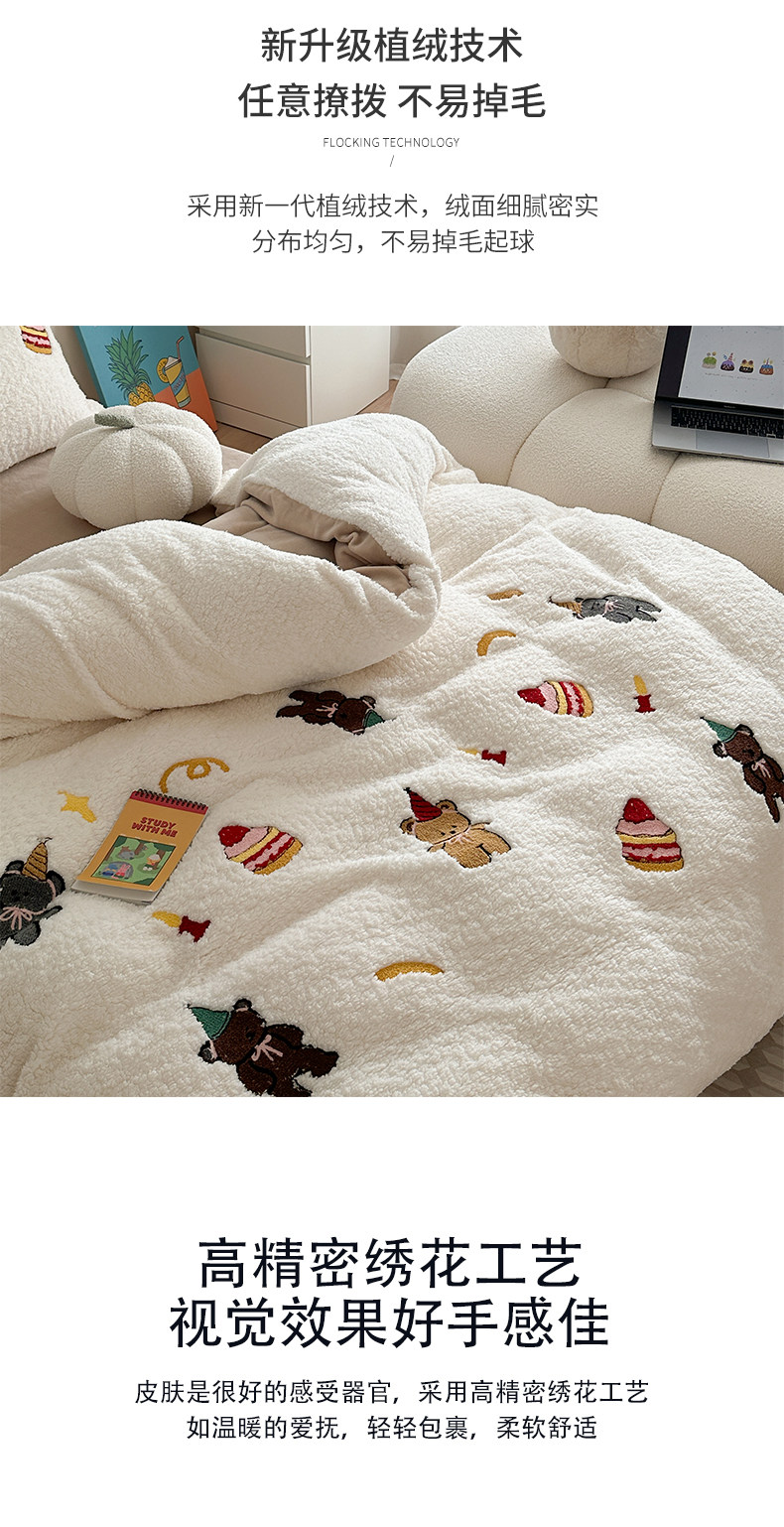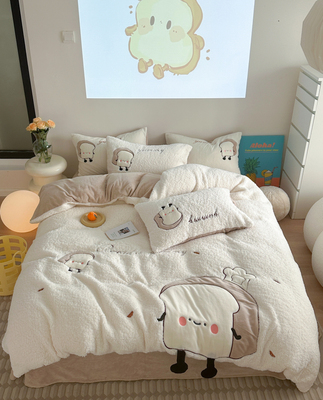 卡通风加厚保暖羊羔绒冬季牛奶绒四件套儿童可爱小熊被套床上用品