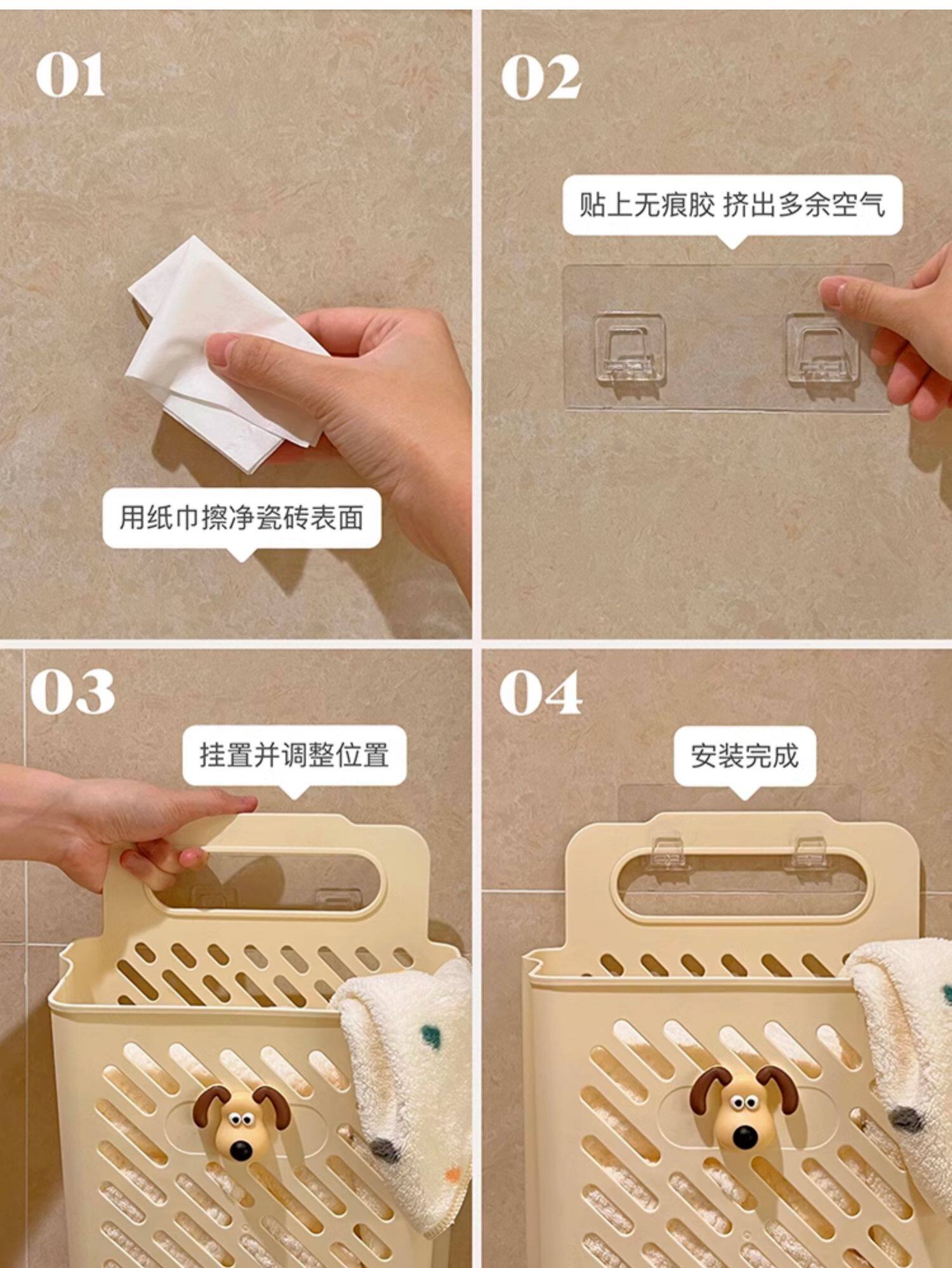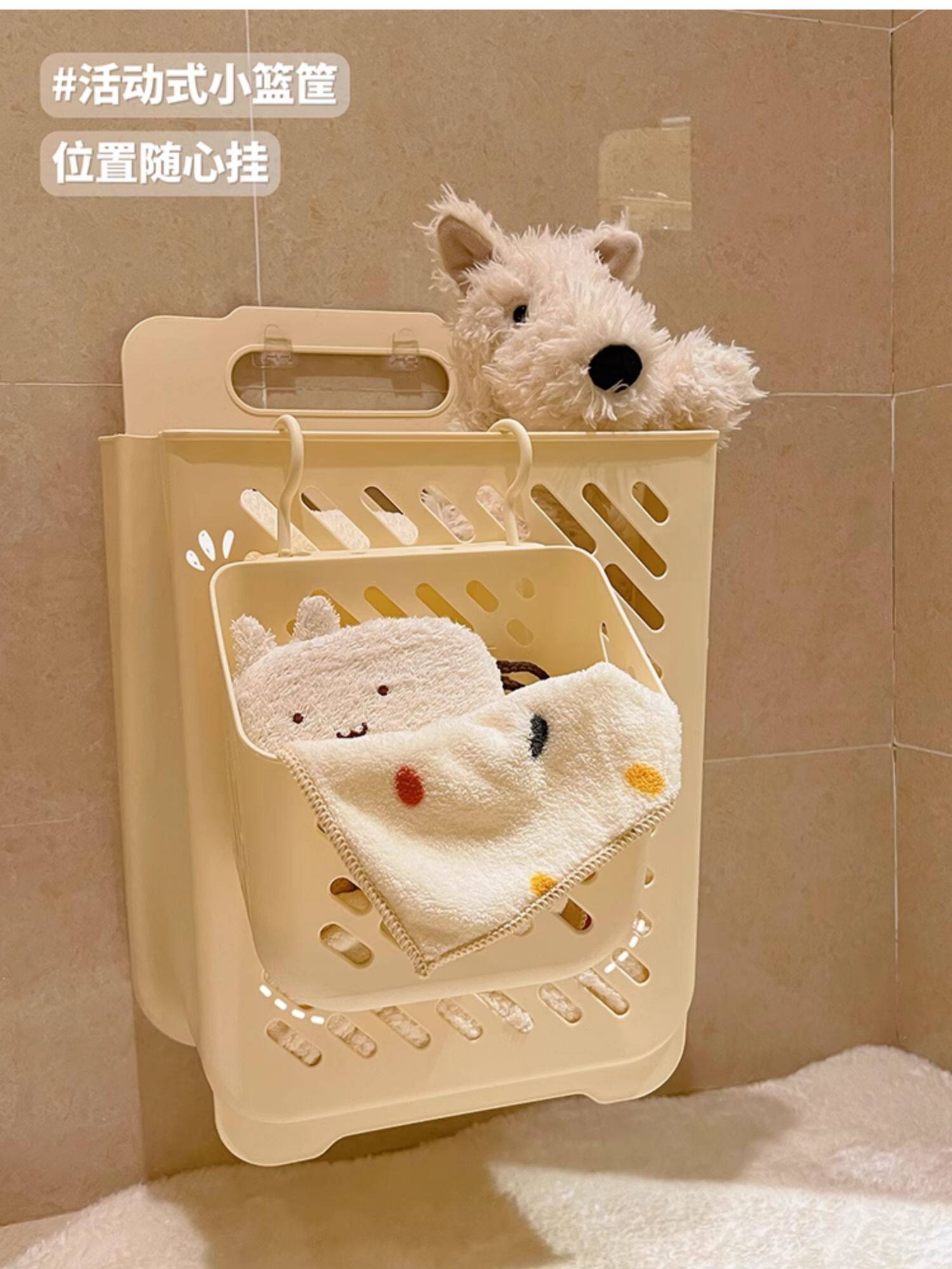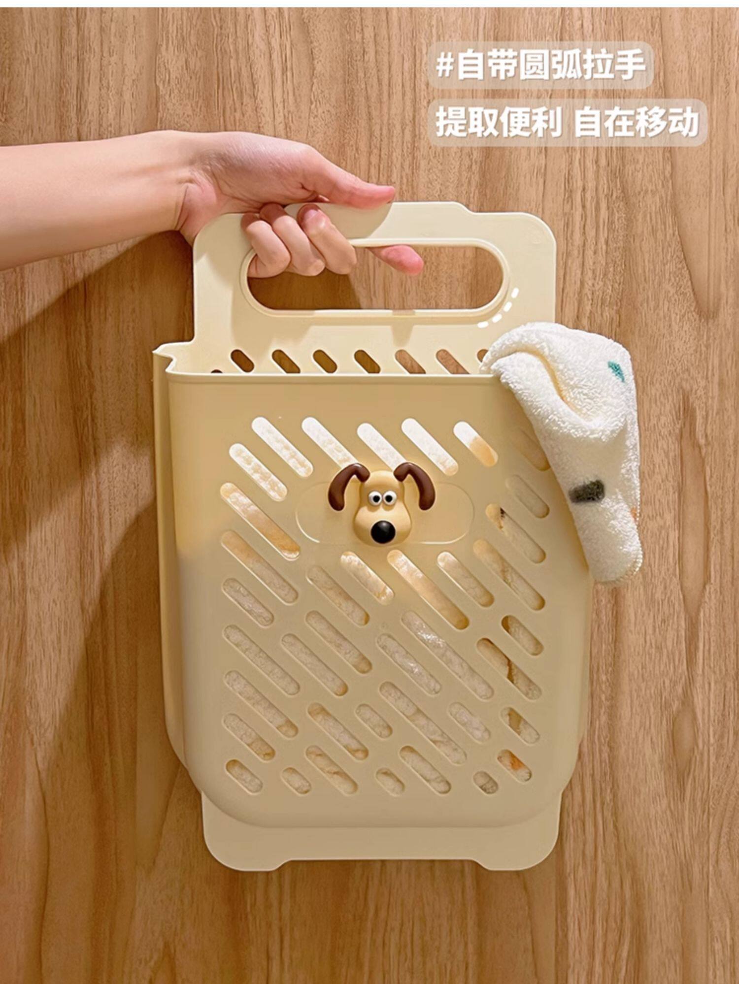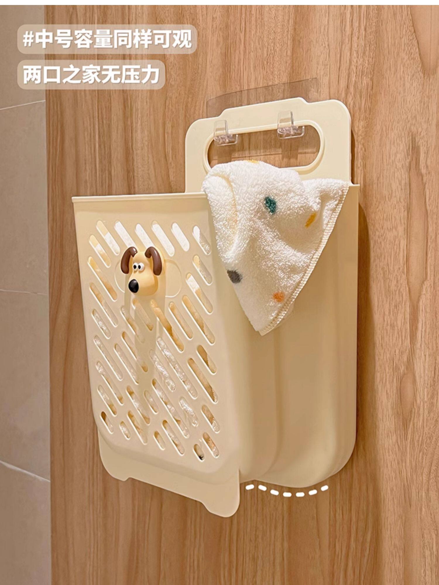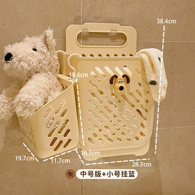 奶油色+狗头贴【中号+小号挂篮】壁挂折叠