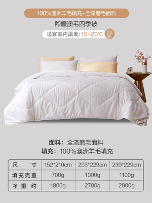 四季被【100%纯澳洲羊毛+磨毛防绒面料】白色 四季被【100%纯澳洲羊毛+磨毛防绒面料】白色