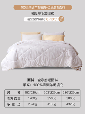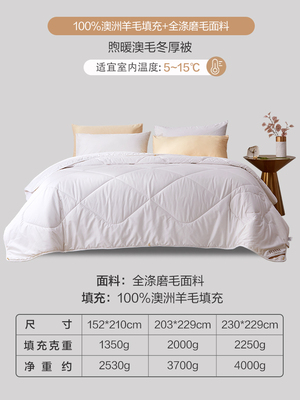 加厚被【100%纯澳洲羊毛+磨毛防绒面料】白色 加厚被【100%纯澳洲羊毛+磨毛防绒面料】白色