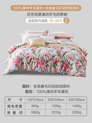 四季被【100%纯澳洲羊毛+磨毛防绒面料】印花 四季被【100%纯澳洲羊毛+磨毛防绒面料】印花