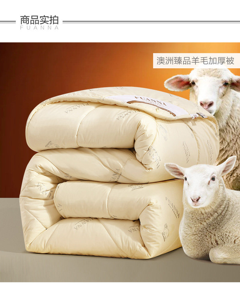 富安娜羊毛被100%纯羊毛澳洲羊绒被子冬被加厚保暖春秋被褥棉被芯