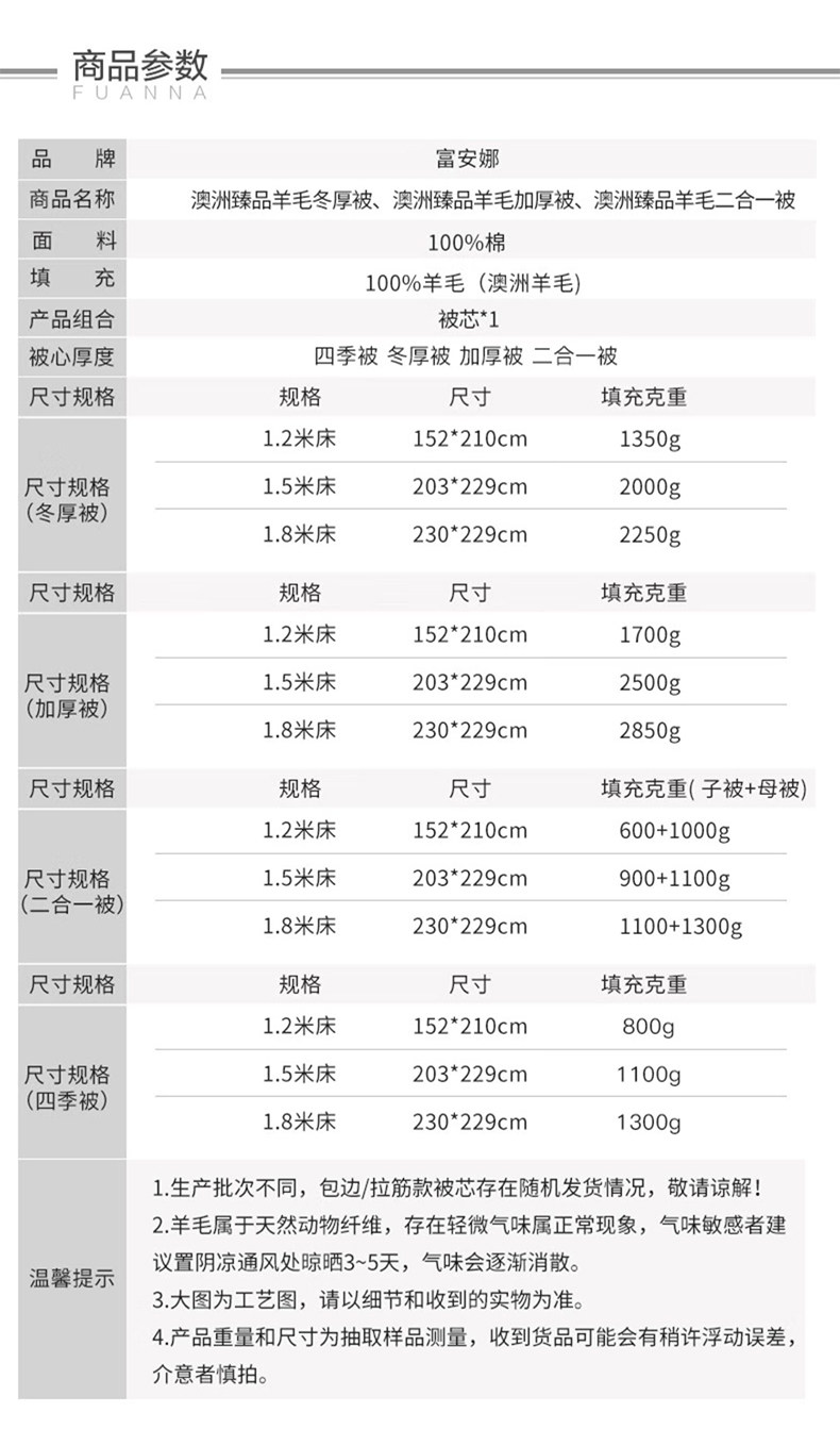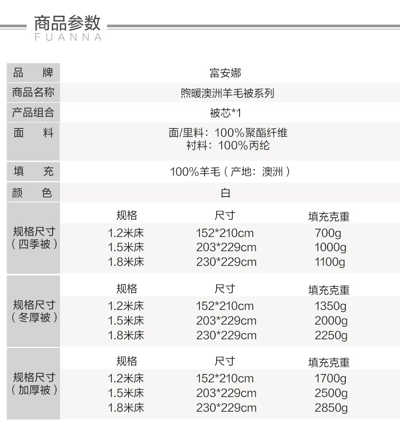 冬厚被【100%纯澳洲羊毛+磨毛防绒面料】白色 冬厚被【100%纯澳洲羊毛+磨毛防绒面料】白色