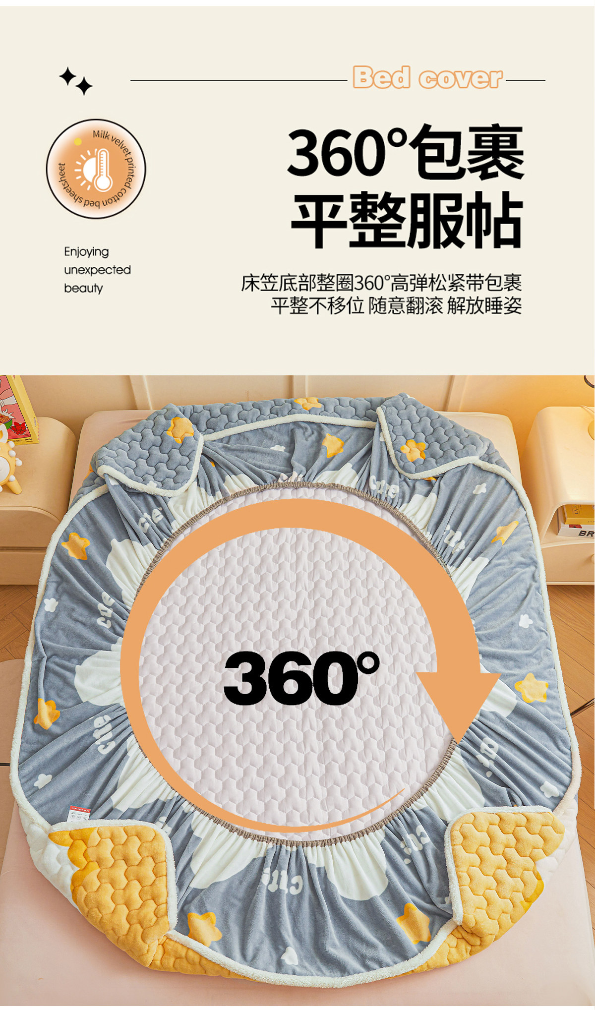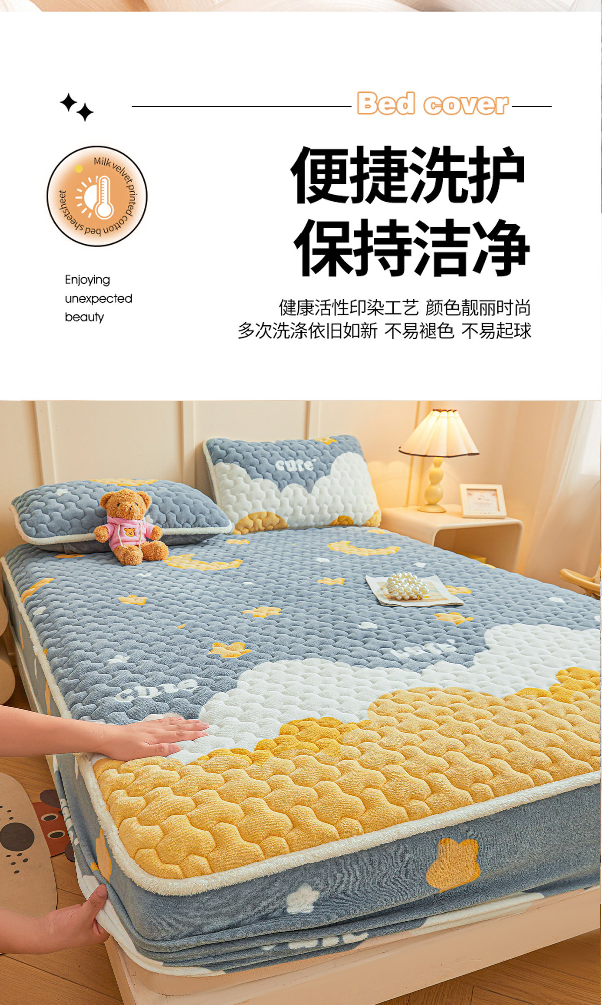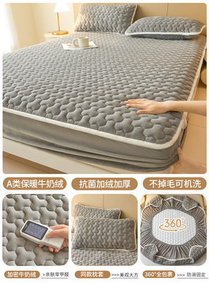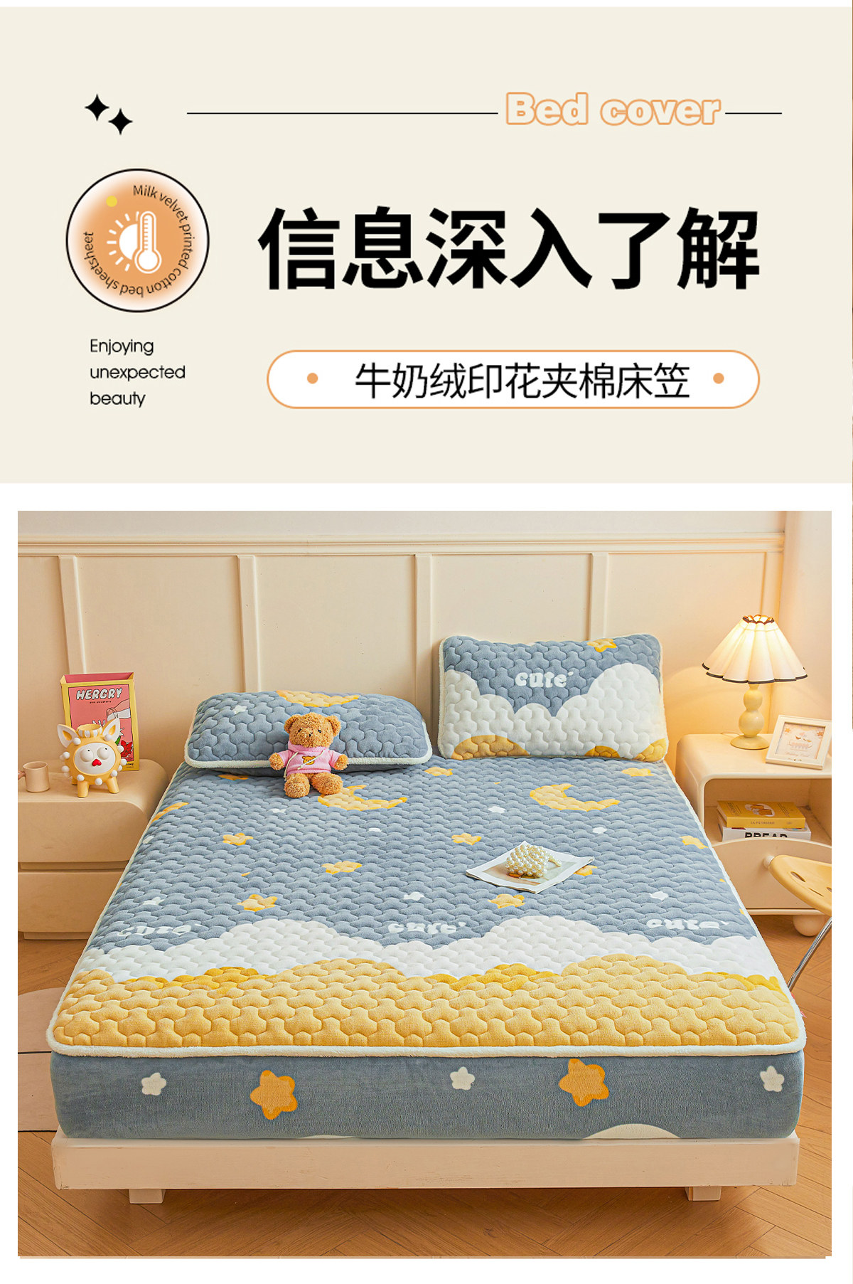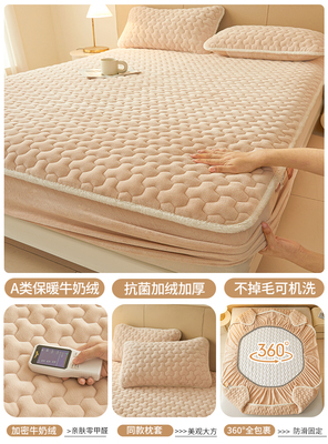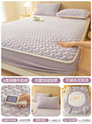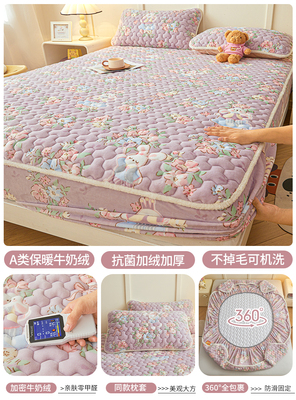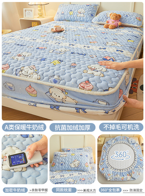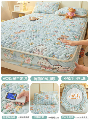 A类抗菌牛奶绒夹棉床笠床罩加绒冬季珊瑚绒床垫套保护罩三四件套