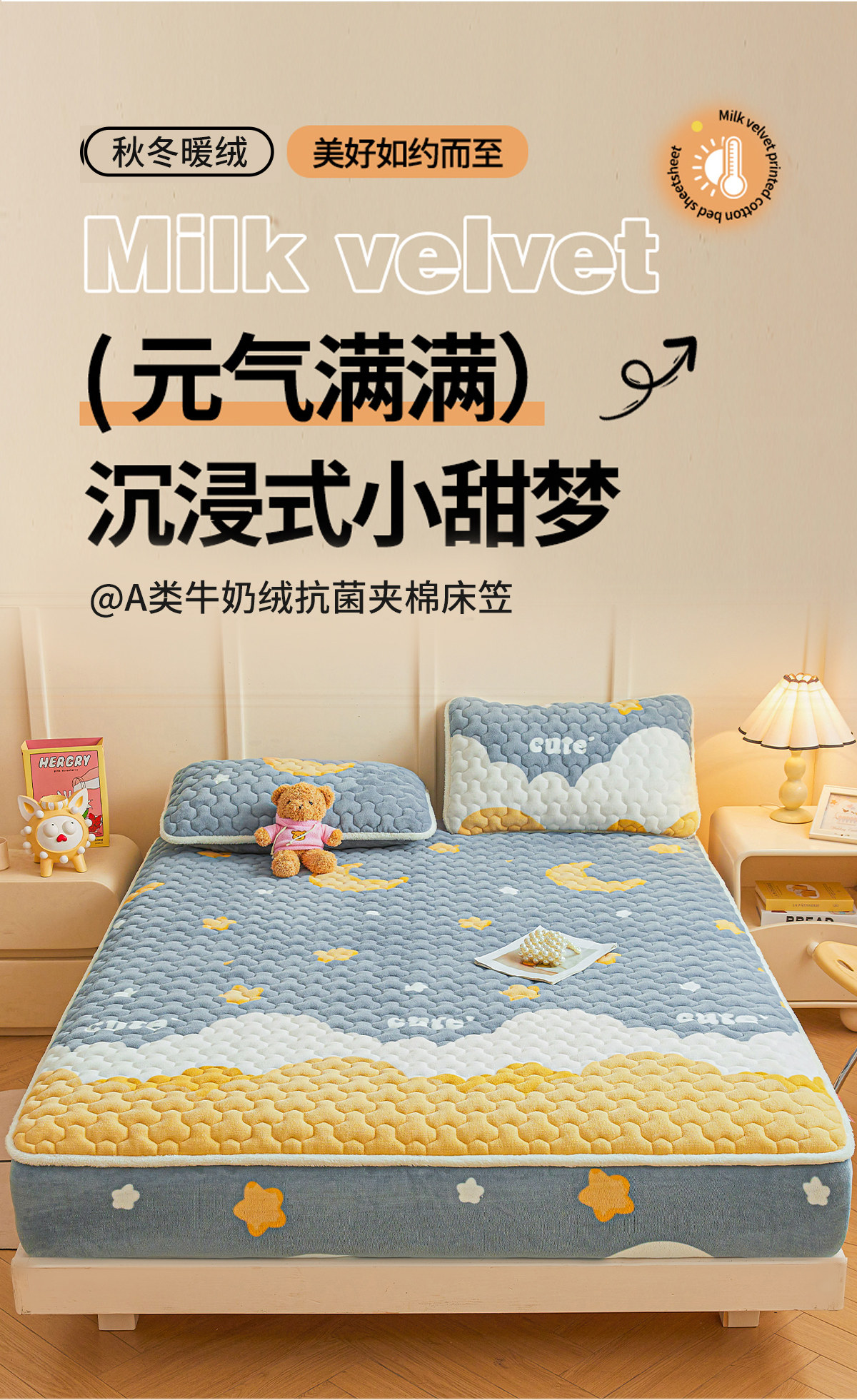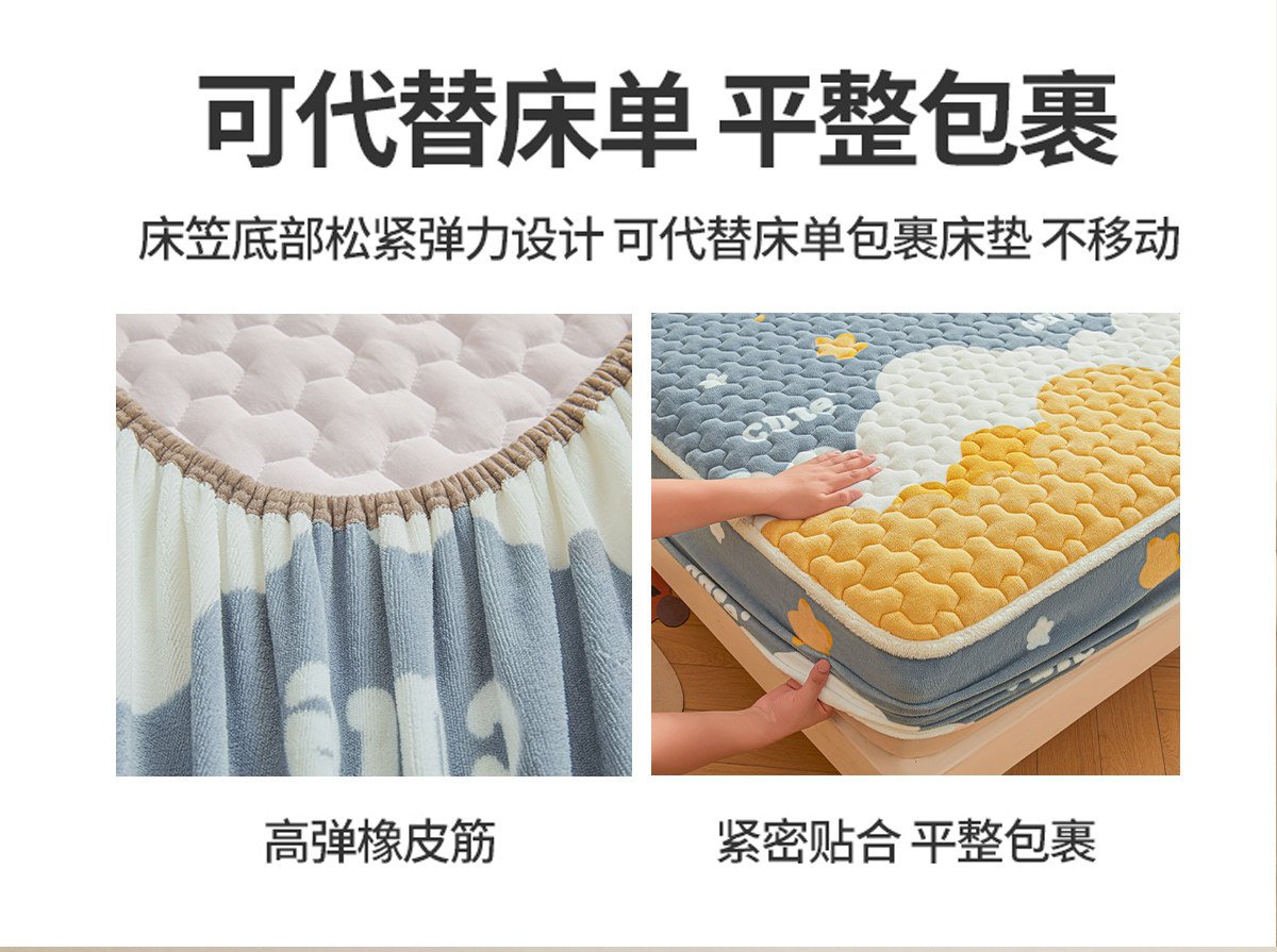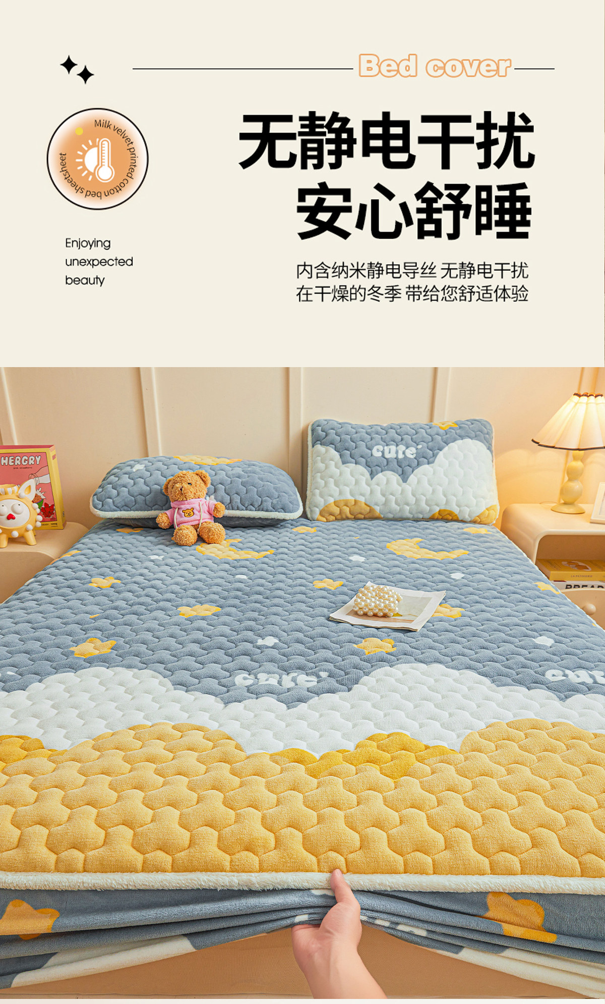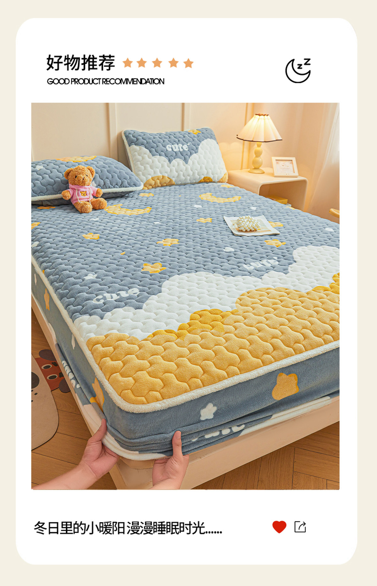 A类抗菌牛奶绒夹棉床笠床罩加绒冬季珊瑚绒床垫套保护罩三四件套