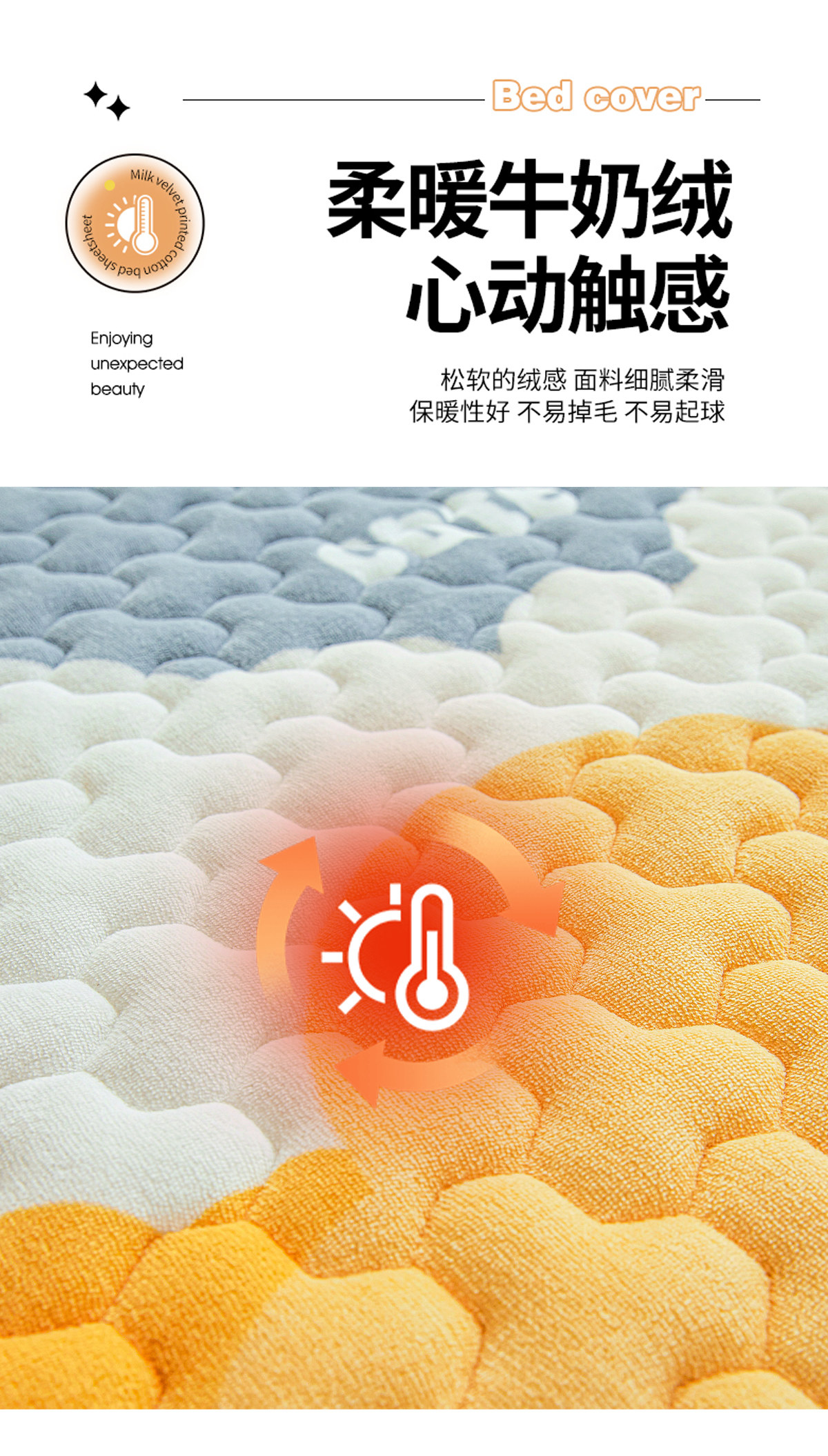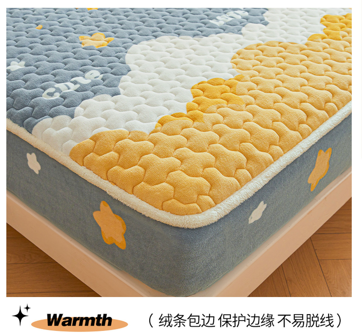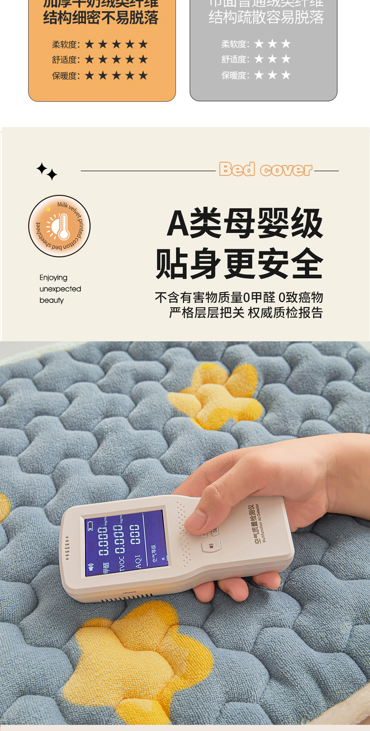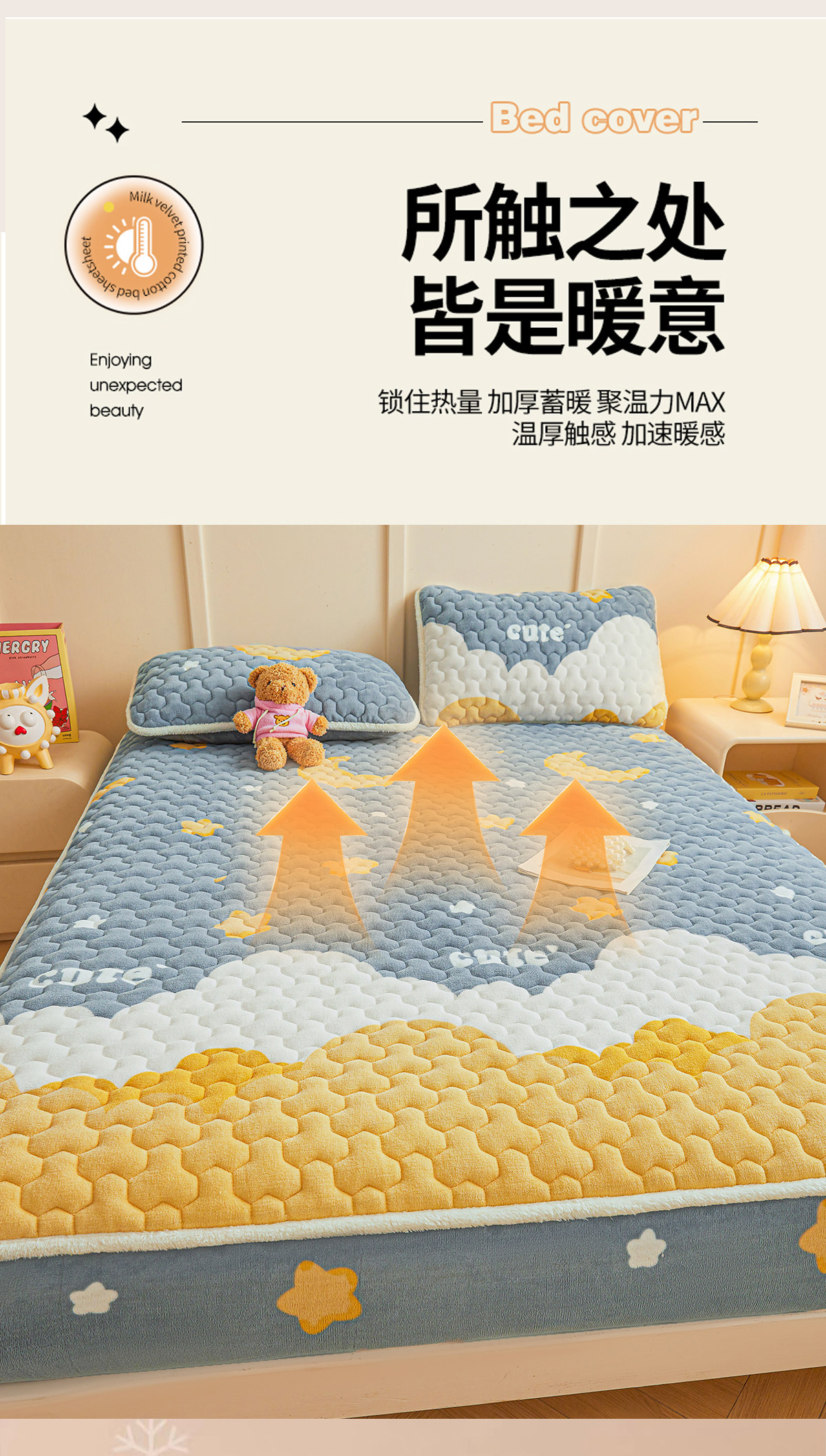 A类抗菌牛奶绒夹棉床笠床罩加绒冬季珊瑚绒床垫套保护罩三四件套