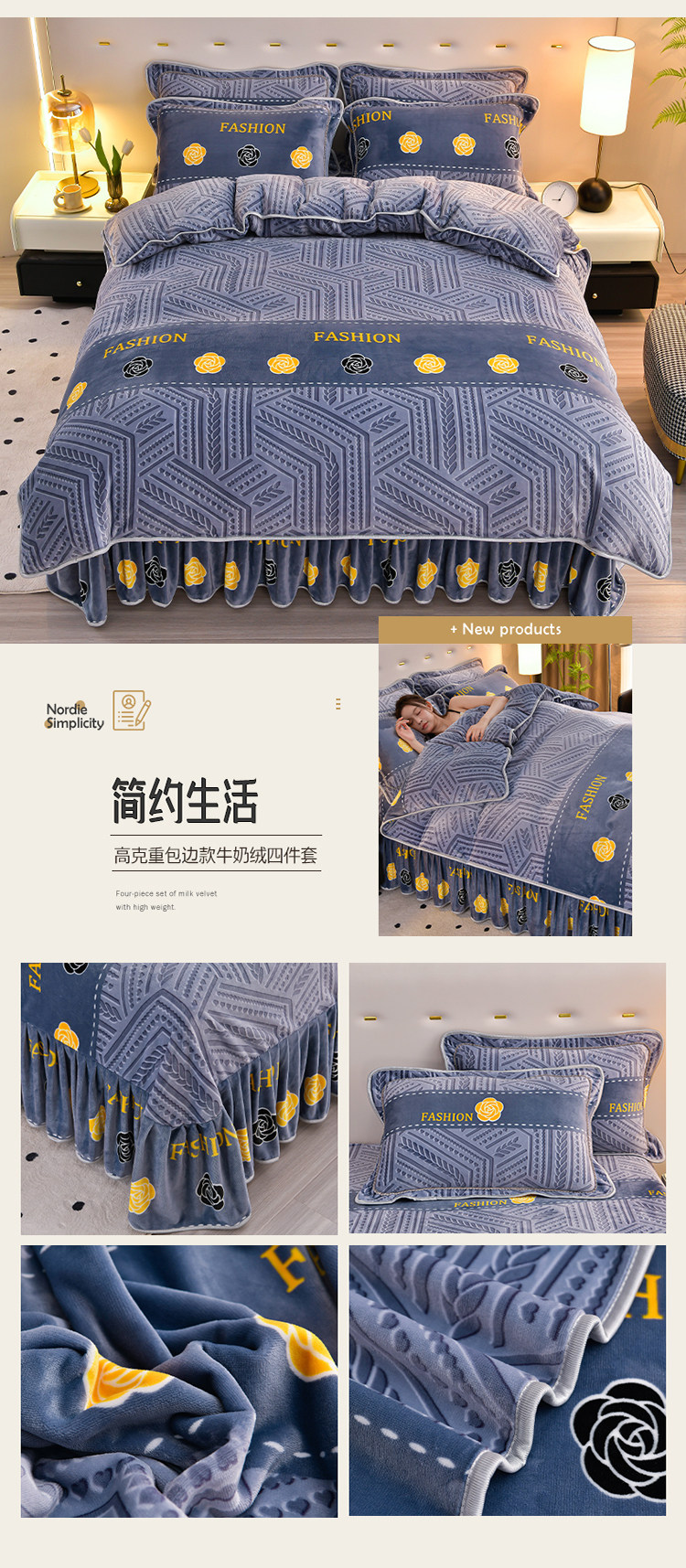 牛奶绒四件套加厚绒金貂珊瑚绒水晶双面法兰绒冬季轻奢高级感厂家