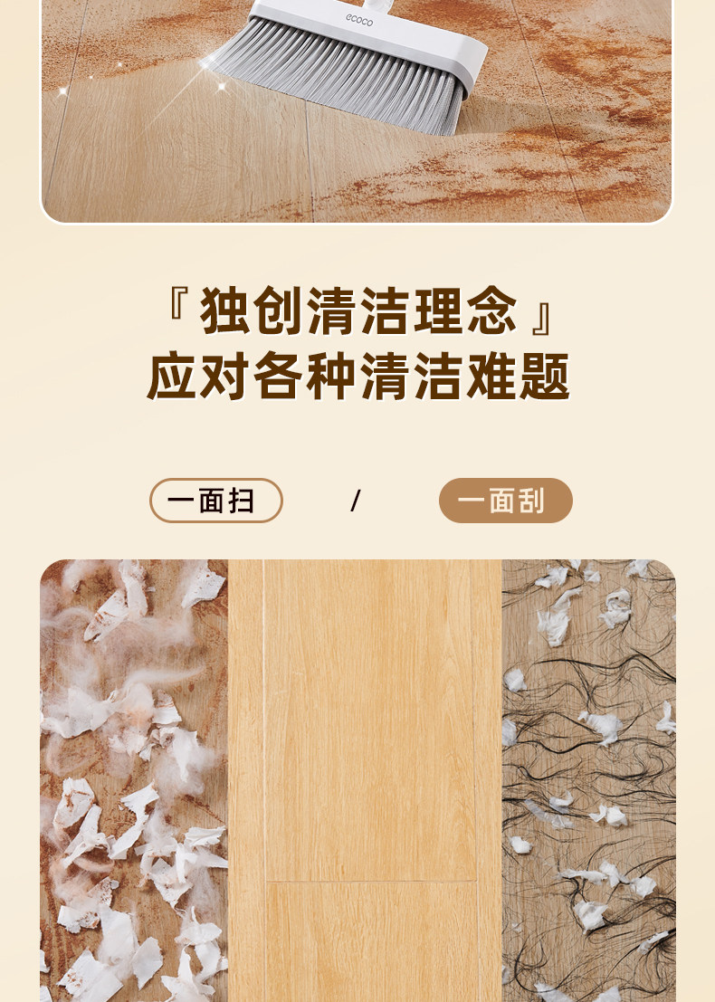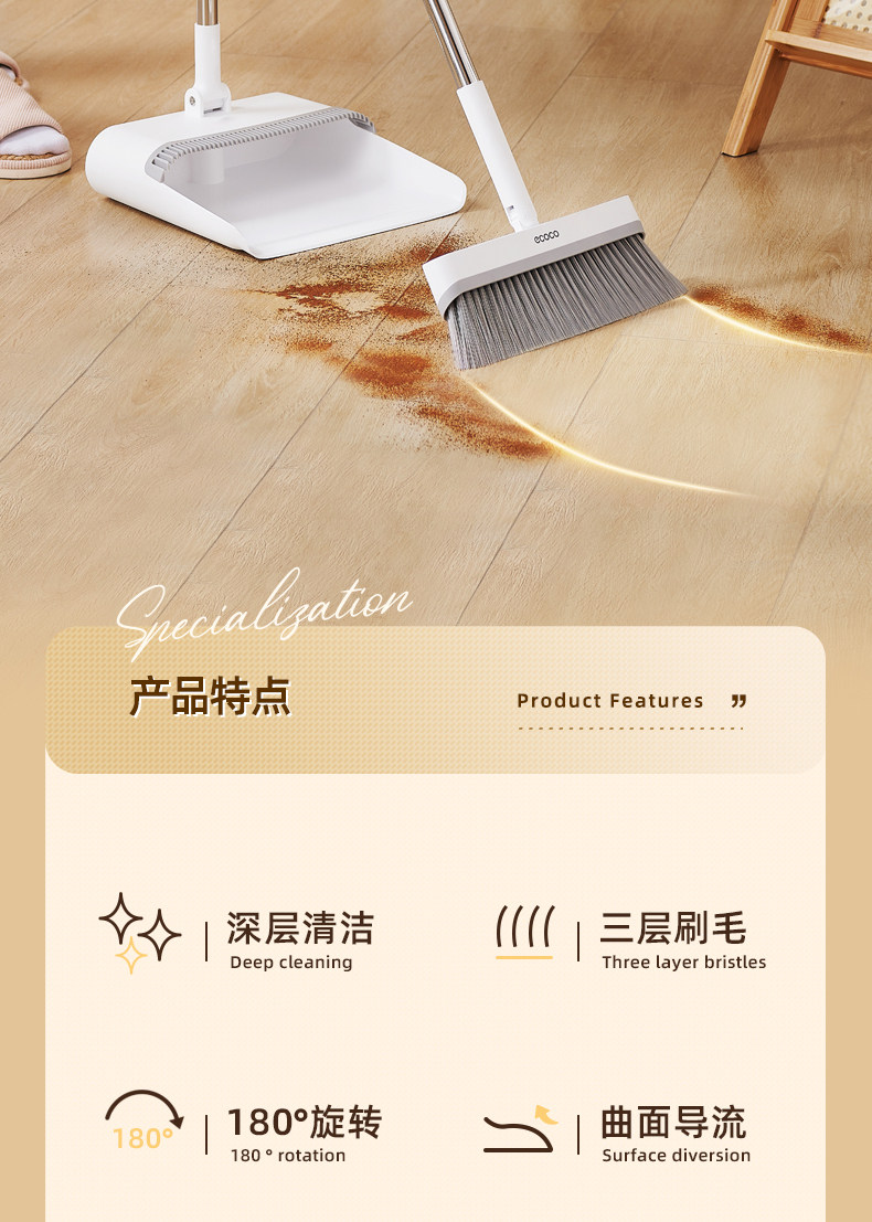 【一扫一刮深度清洁丨 加厚刷毛】扫把+簸箕套装