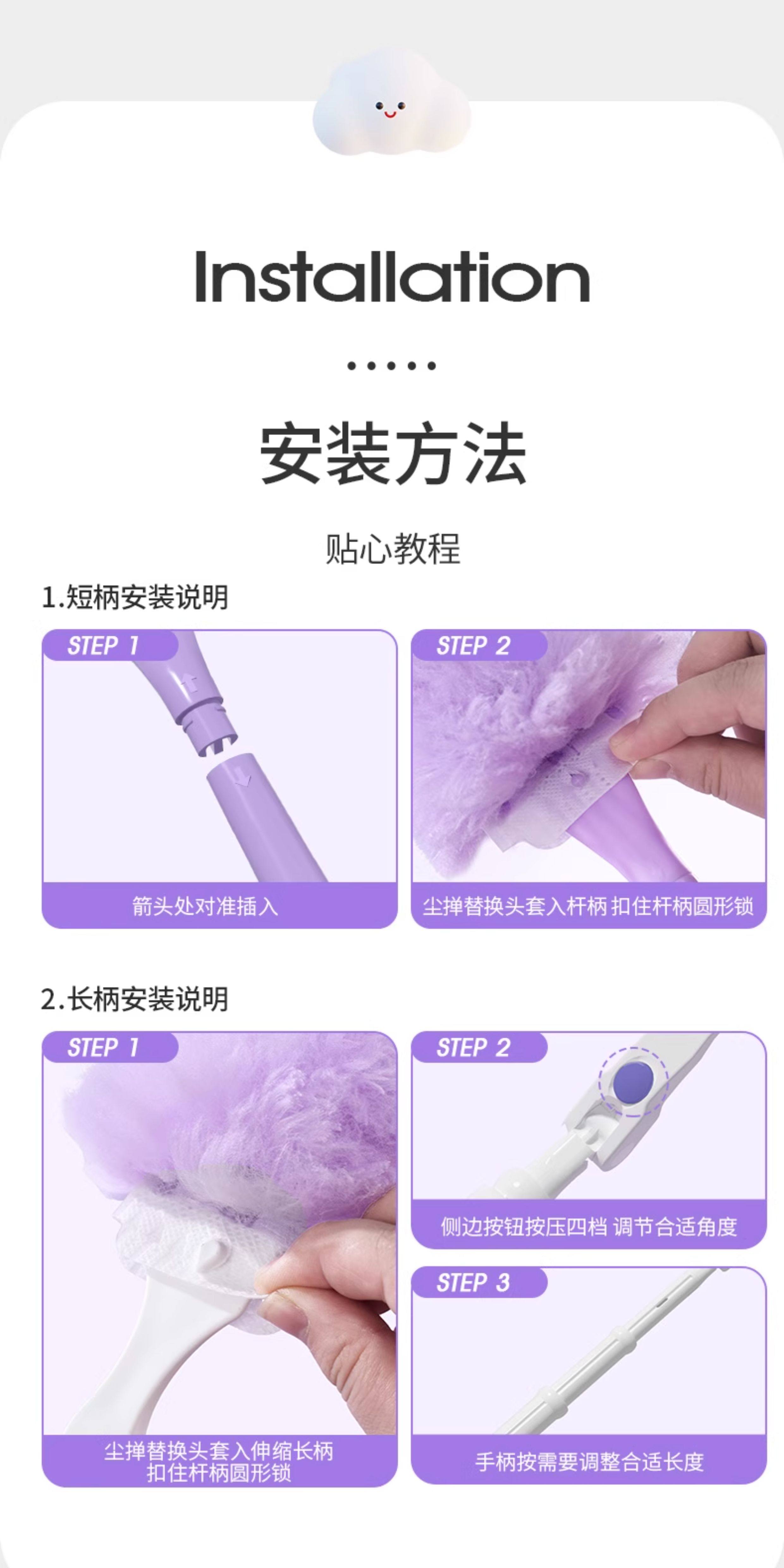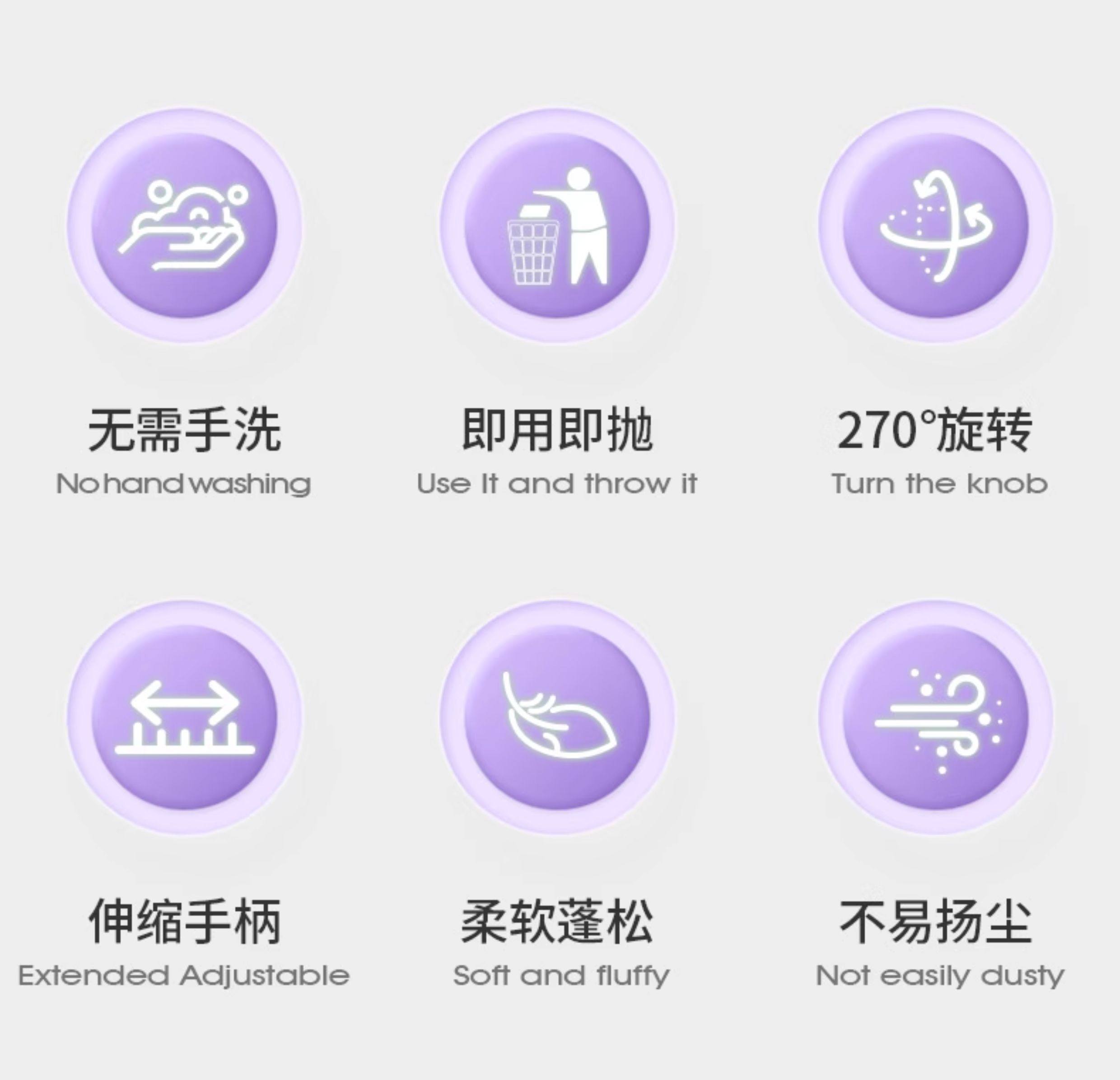 【⭐️长短柄套装-送收纳桶】长柄+短柄+22片双面布丨紫色 划算组合