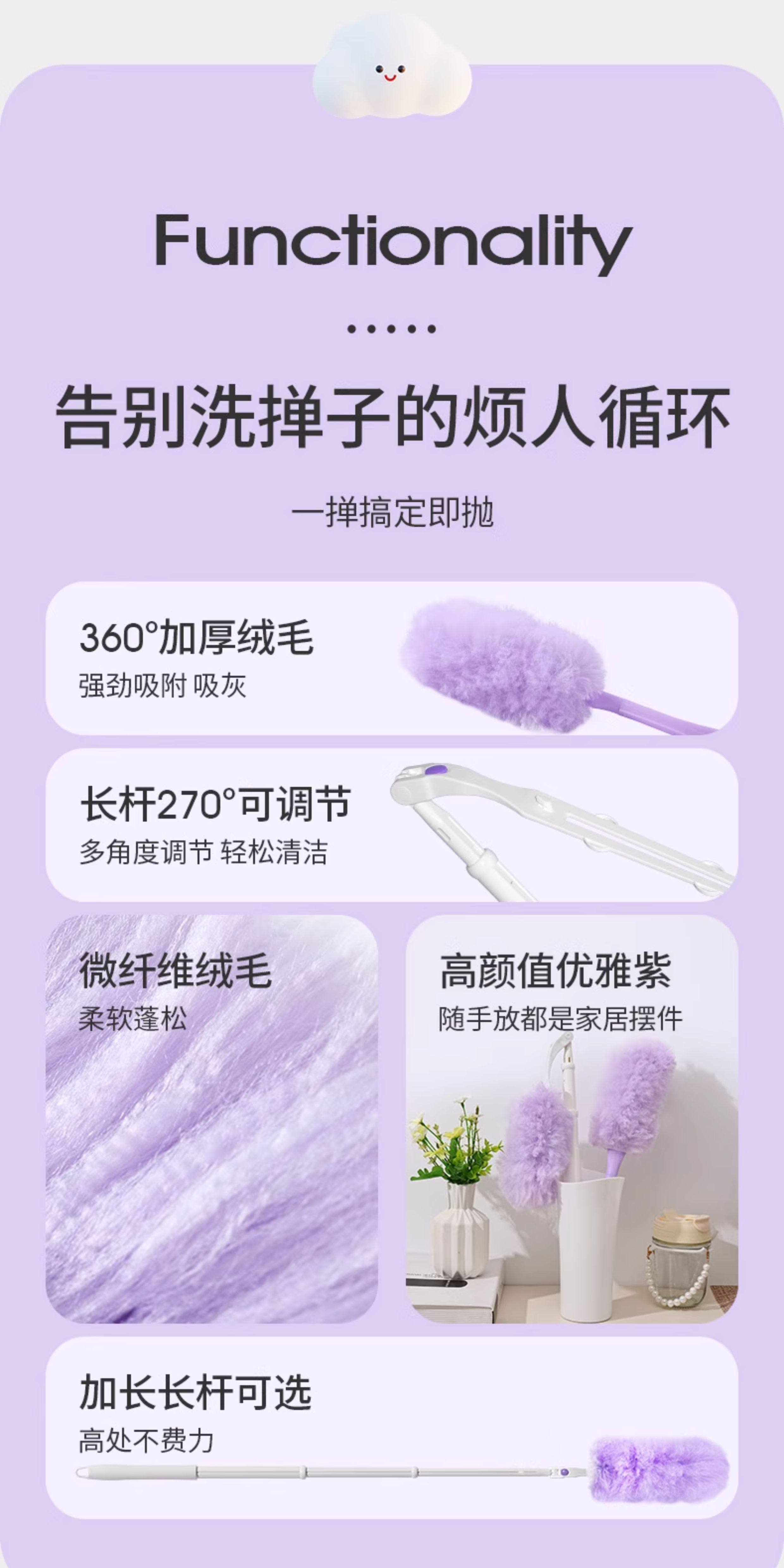 【长短柄套装】长柄+短柄+加密蓬松双面布15片丨紫色10 蓝色5 高低都能扫