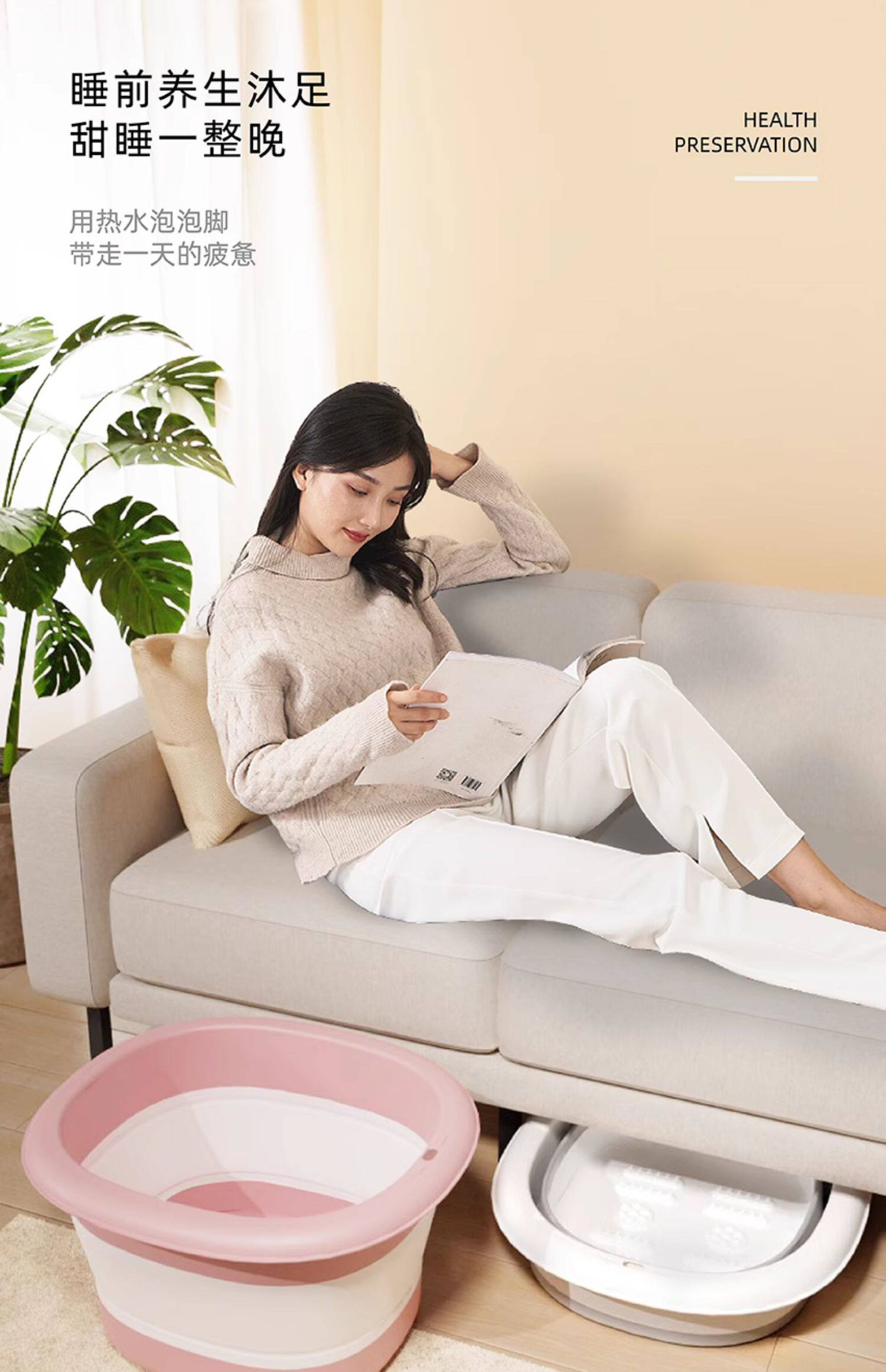 可折叠泡脚桶家用便携按摩养生足浴盆加高深过小腿冬季保温洗脚盆