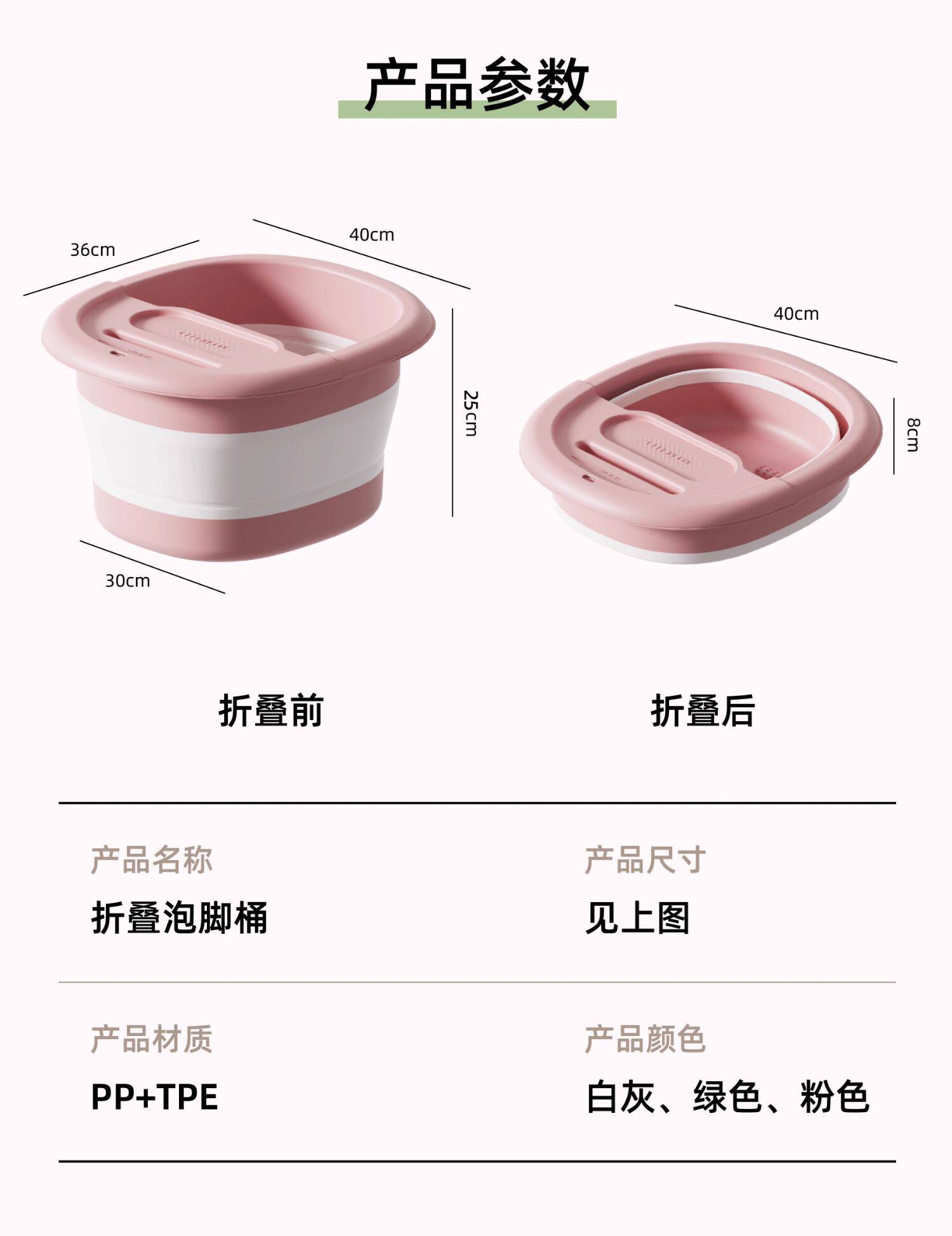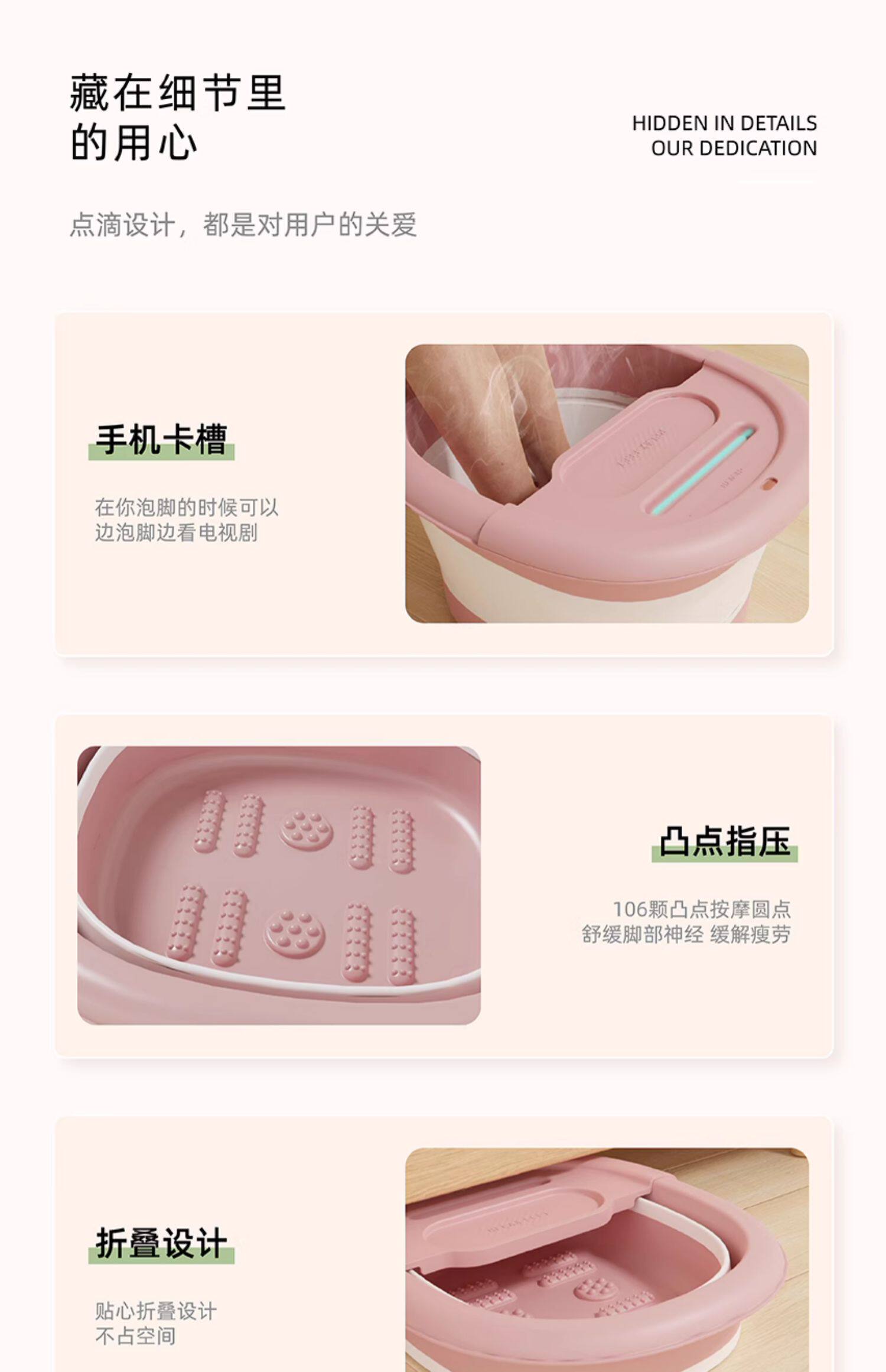 樱花粉-无盖+30袋足浴包【升级加厚/可折叠/按摩颗粒】