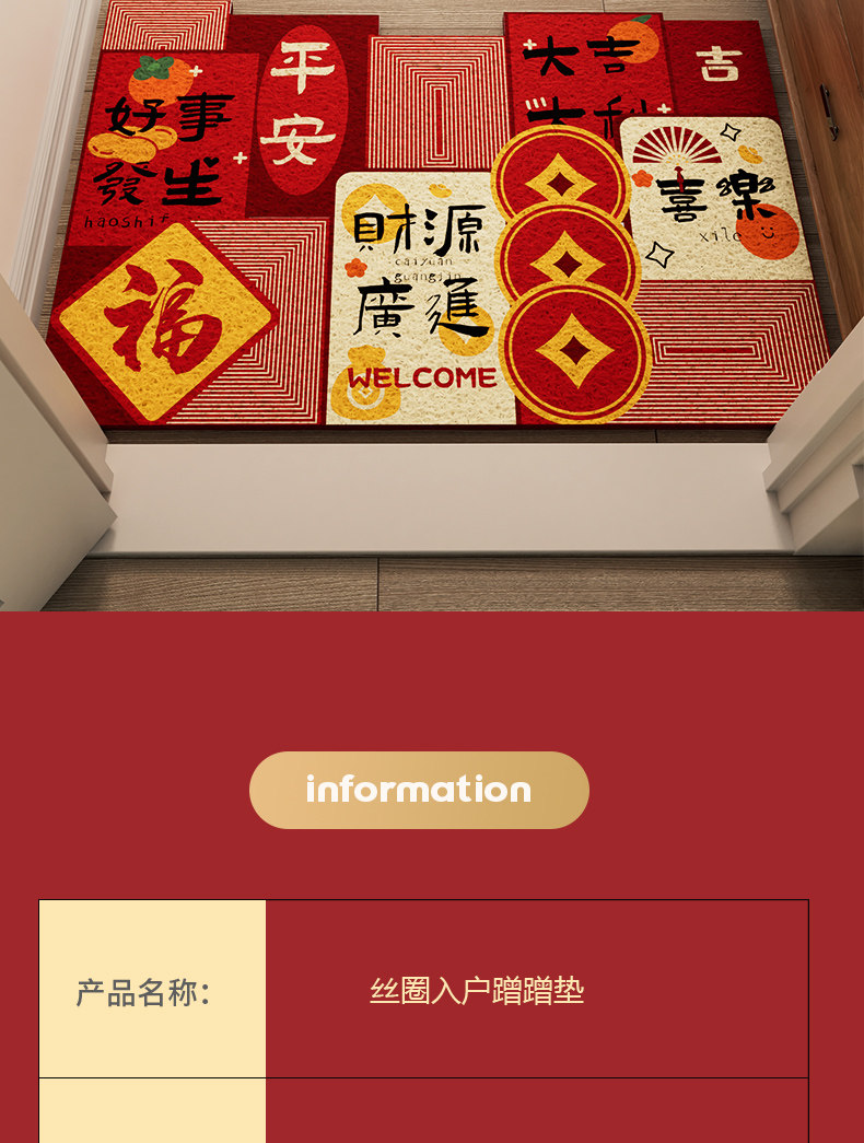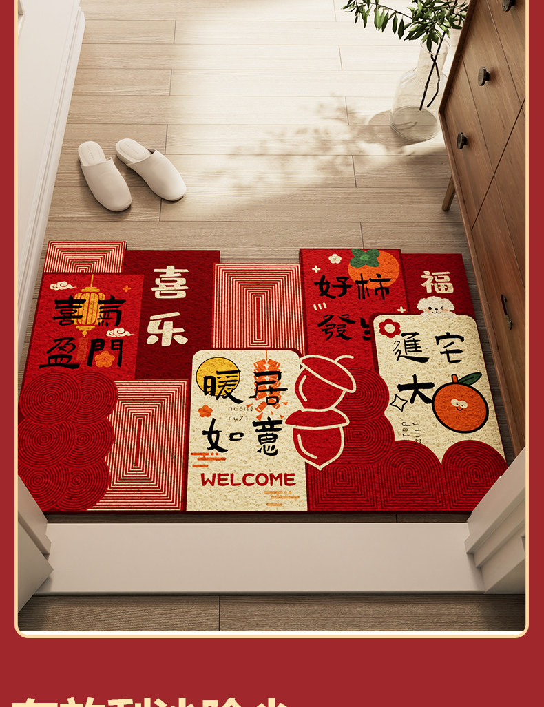 入户门地垫进门马年新年门垫乔迁脚垫门口脚踏垫红色喜庆门外地毯