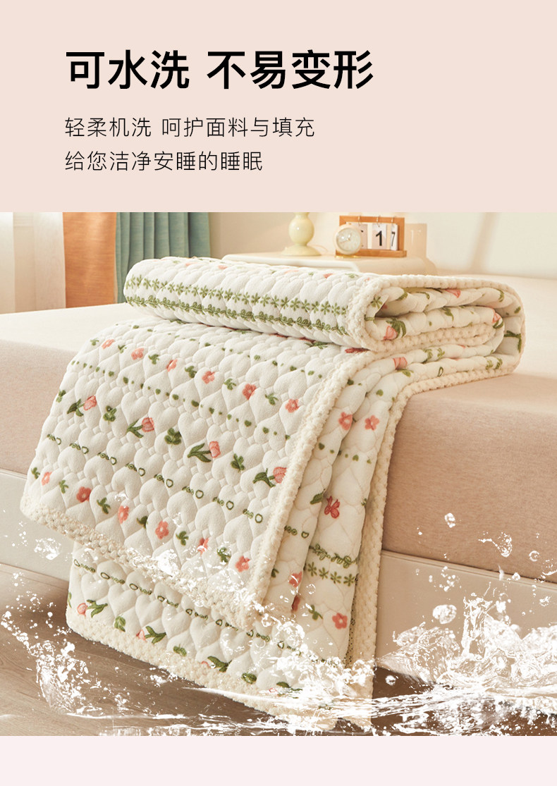 洁丽雅A类牛奶绒床垫软垫家用珊瑚绒羊羔绒垫被褥子加绒床褥垫褥