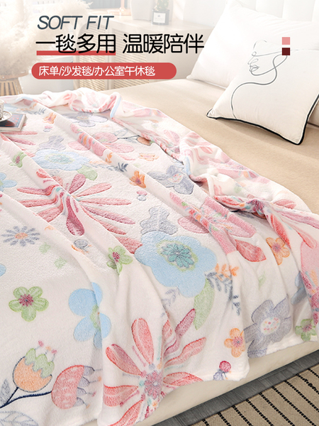 牛奶绒毛毯冬季午睡办公室披肩薄空调盖毯珊瑚绒沙发小被子床上用