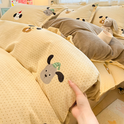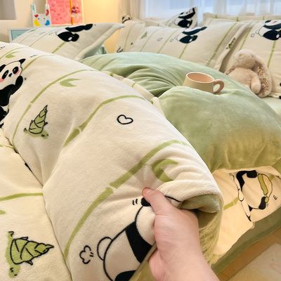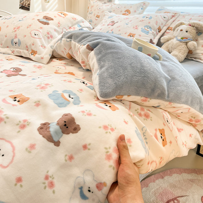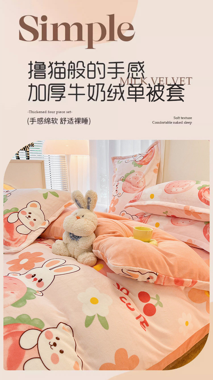 牛奶绒珊瑚绒被套单件冬季加厚加绒法兰绒被罩三件套学生宿舍儿童