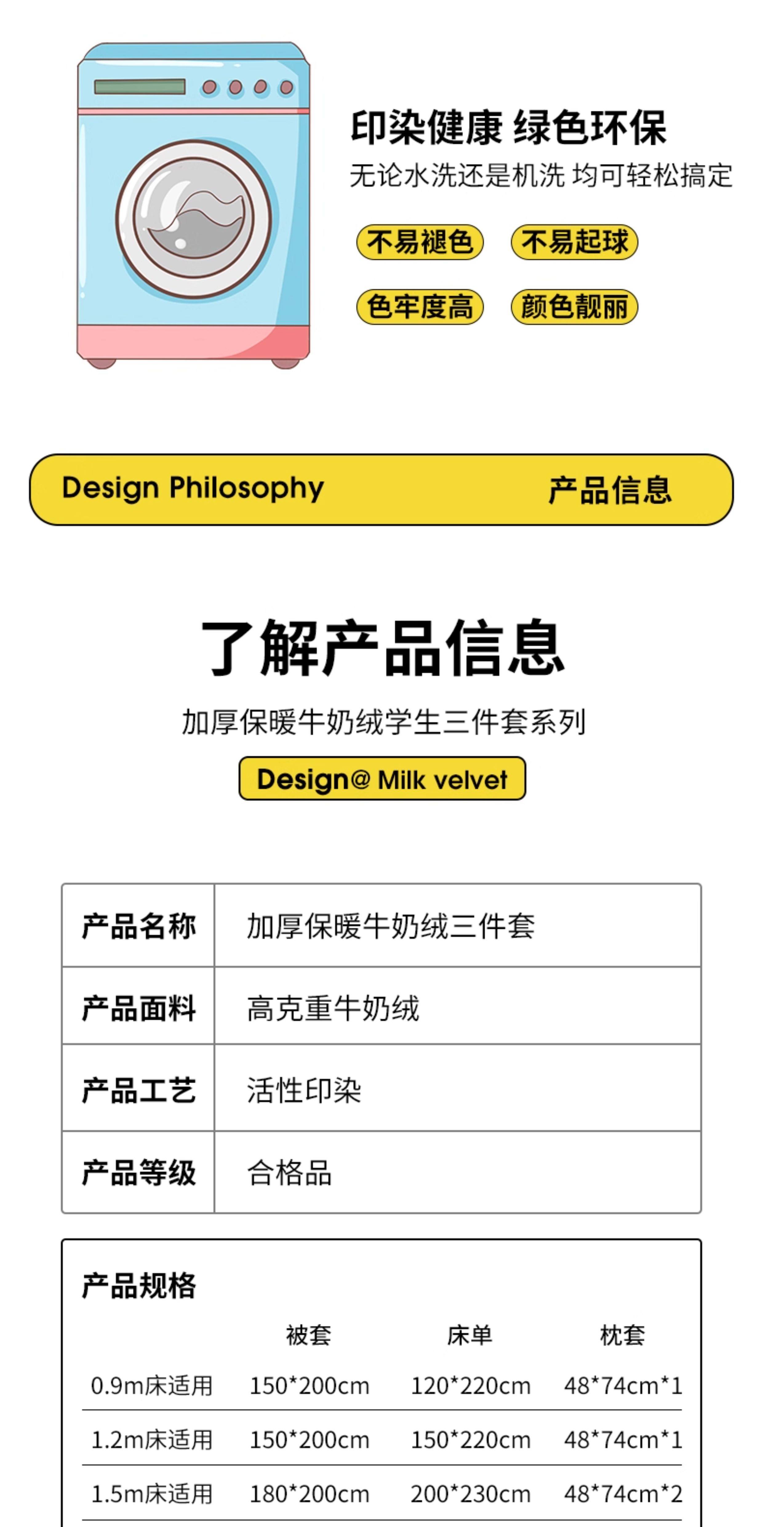 1.2m床三件套:被套1.5X2.0m,床单1.5X2.2m,枕套1个