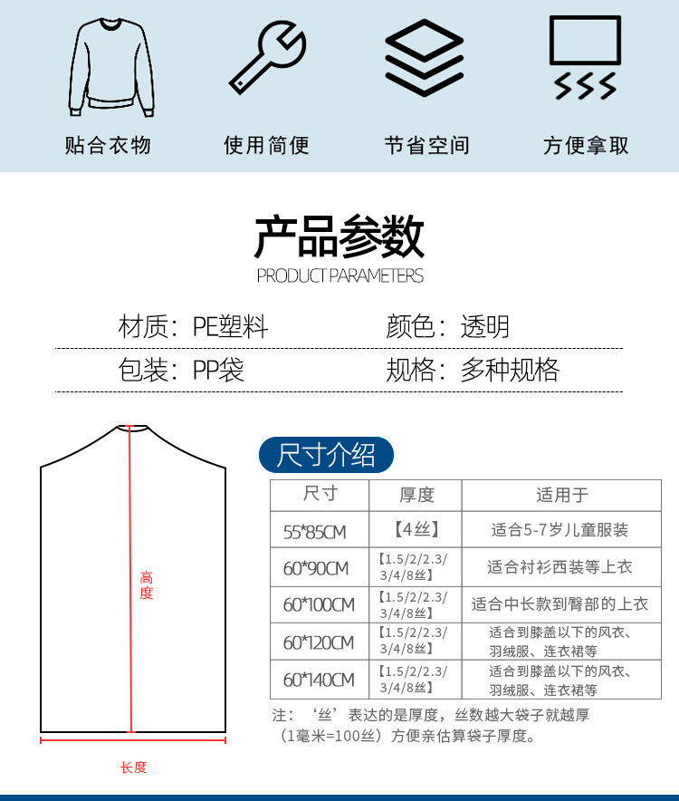 套衣服防尘罩一次性透明干洗店防尘塑料袋衣套罩家用洗衣挂衣袋子