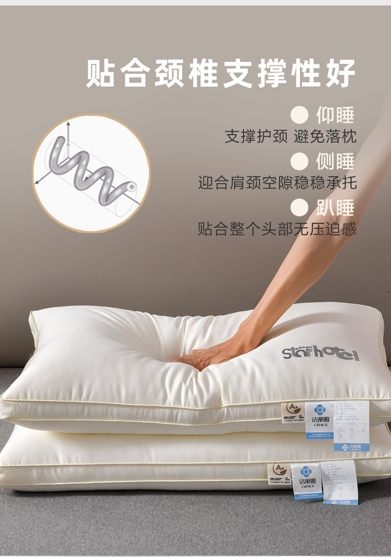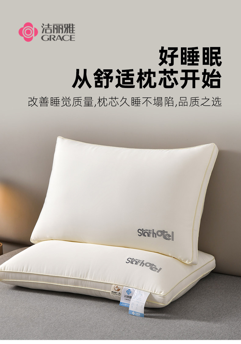洁丽雅一对家用酒店枕头宿舍专用单个枕芯护颈椎助睡眠成人低整头