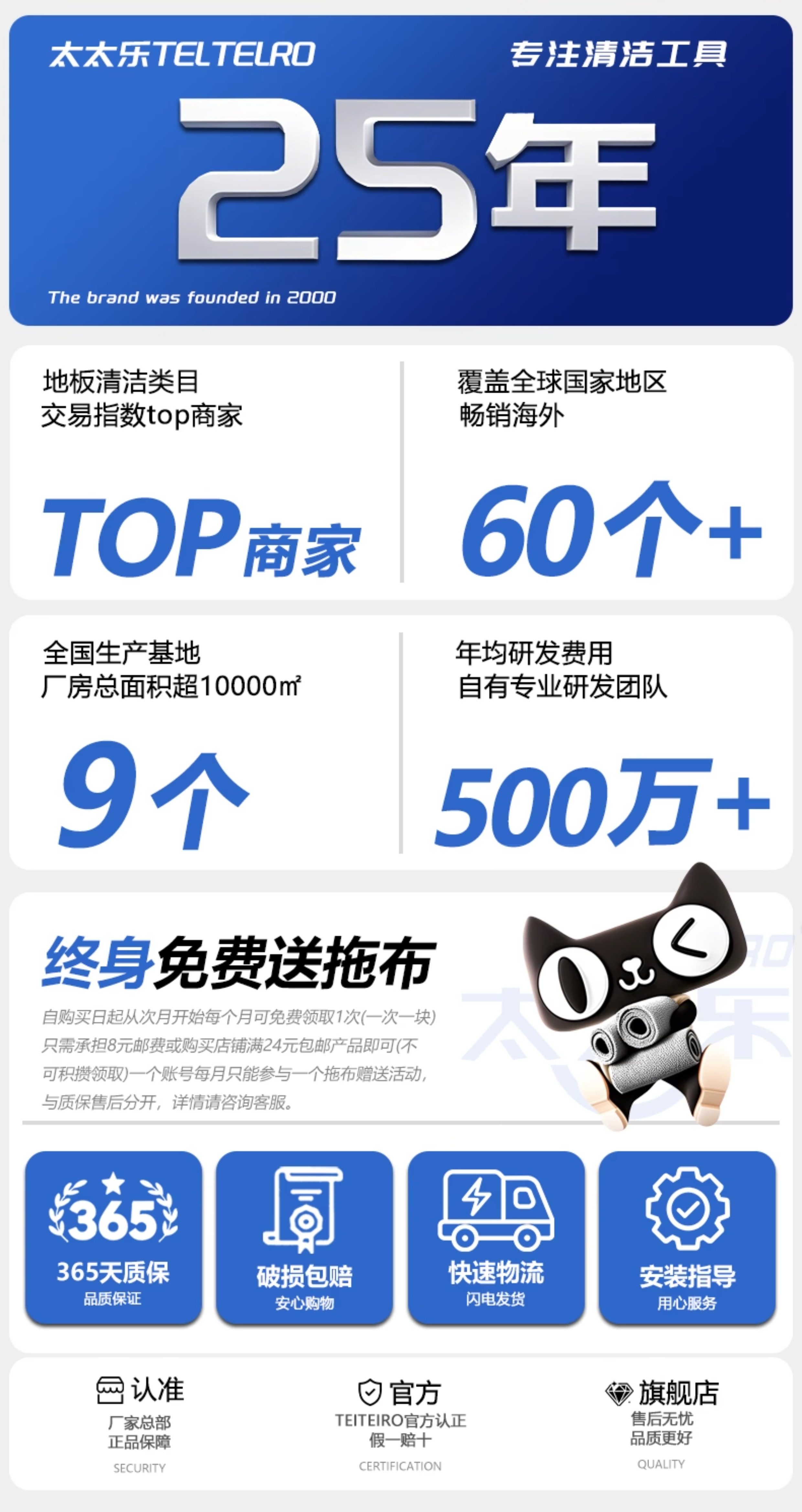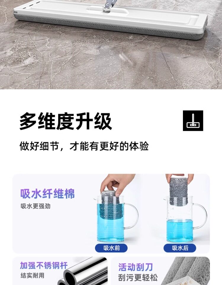 刮水一体【42cm厚板+6原装布】❤双重刮污+加粗不锈钢杆