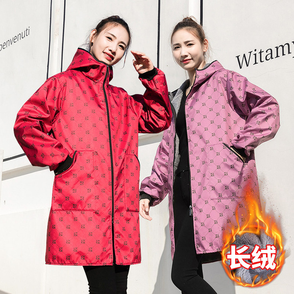 成人加绒工作服加厚保暖防水罩衣时尚外套防风长袖围裙家用男女款