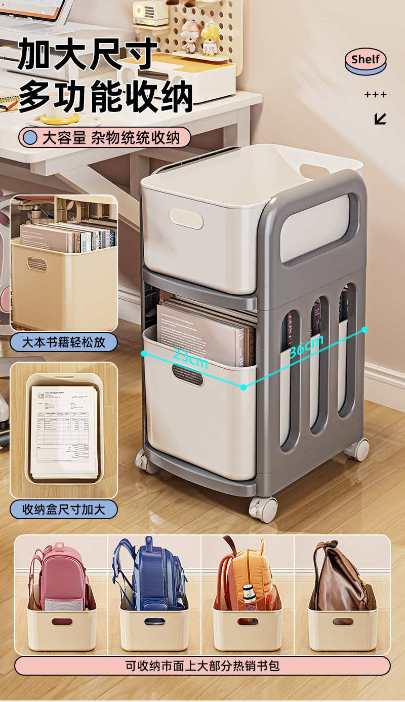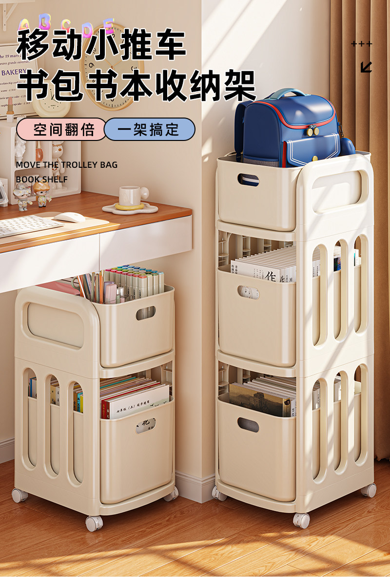 书包置物架可移动小推车办公室桌下书本收纳柜学生书包放置神器