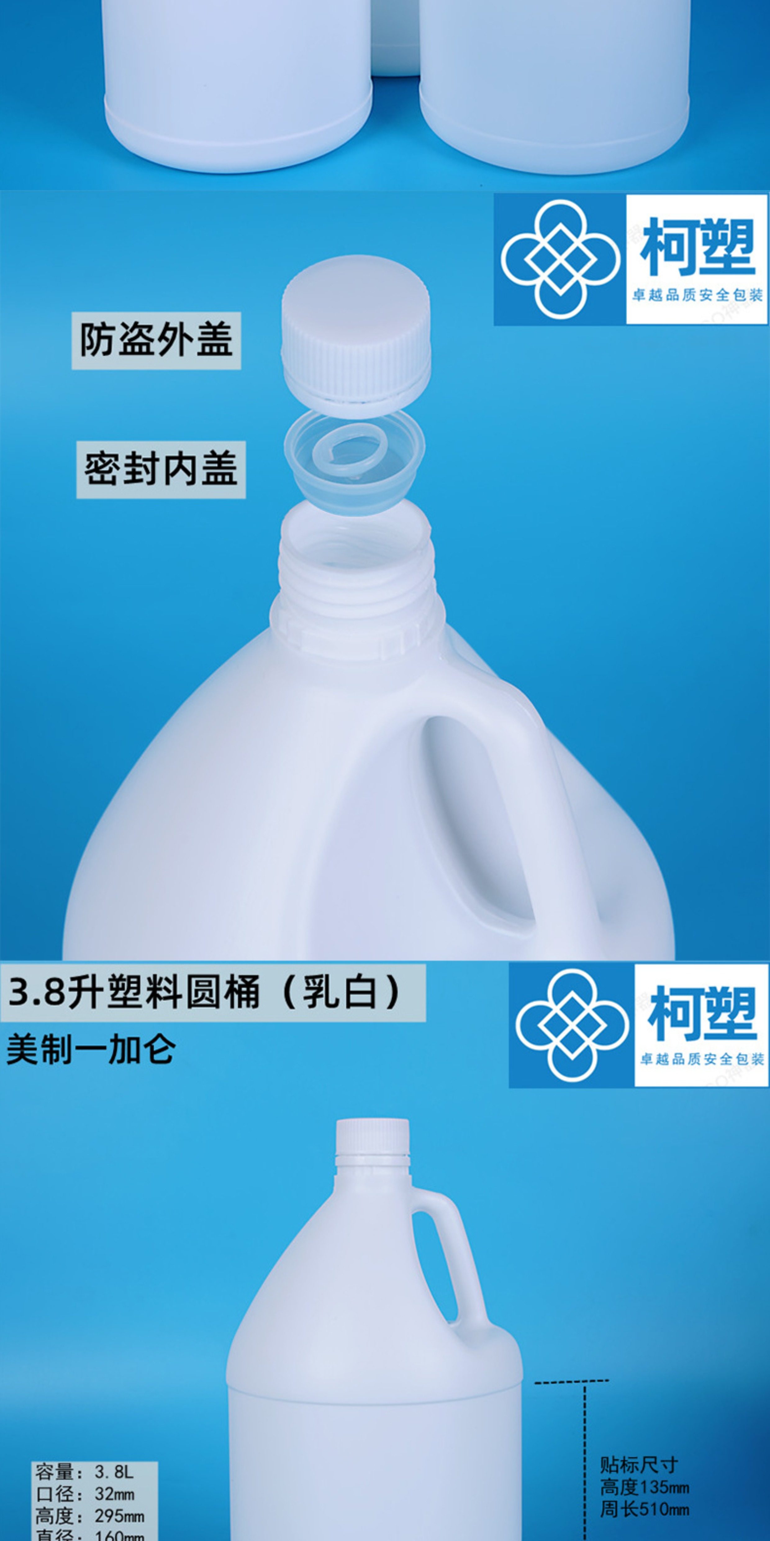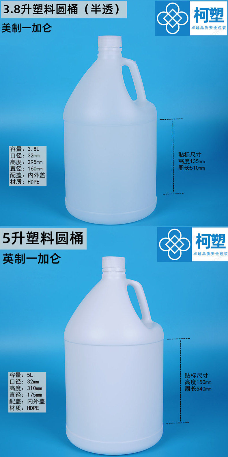 3.8升加仑桶5升塑料桶胶壶纯净水桶化工桶食品级加厚密封小口圆罐