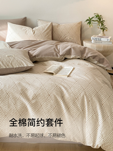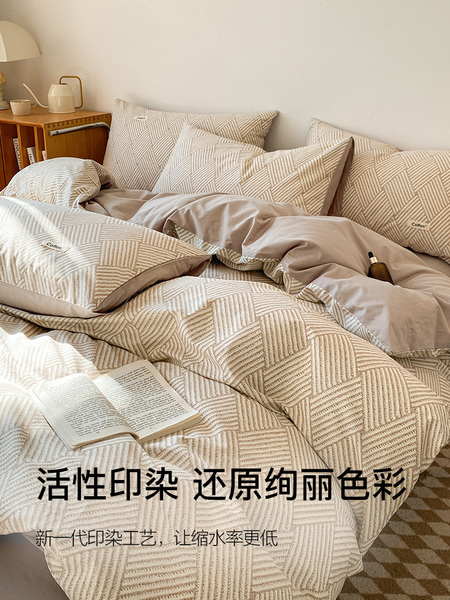 洁丽雅纯棉四件套全棉被套床单单人床上用品学生宿舍床笠款三件套