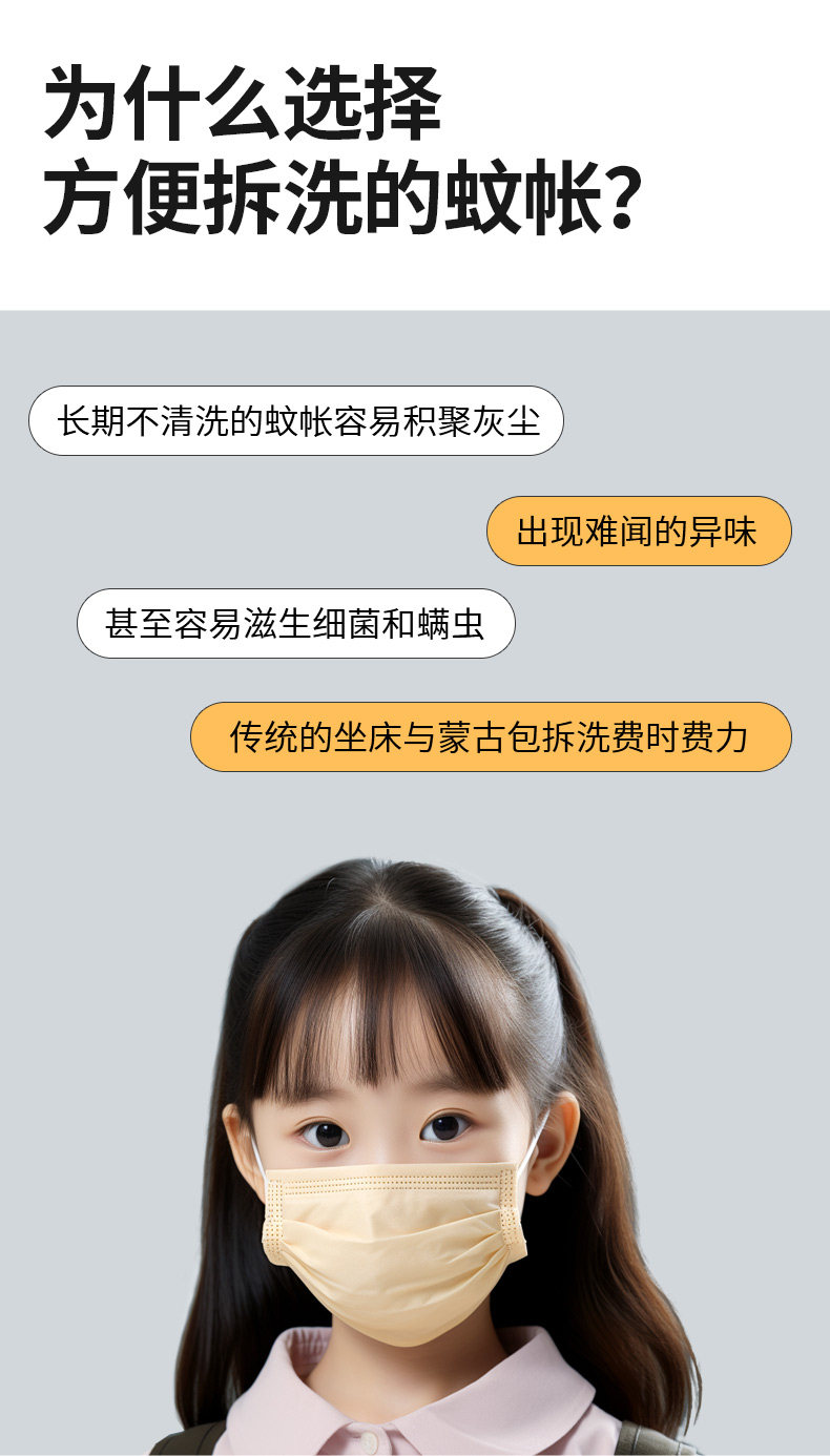 蚊帐里外均有绑带,单独用、搭配支架用均可