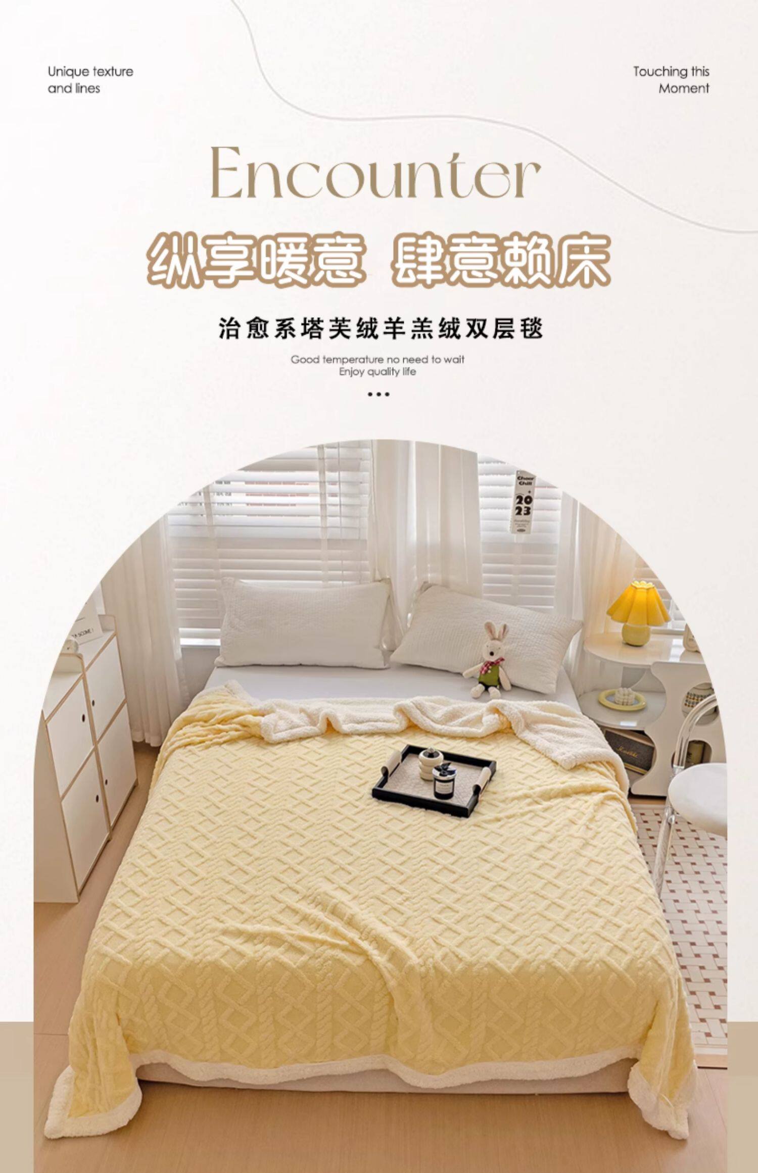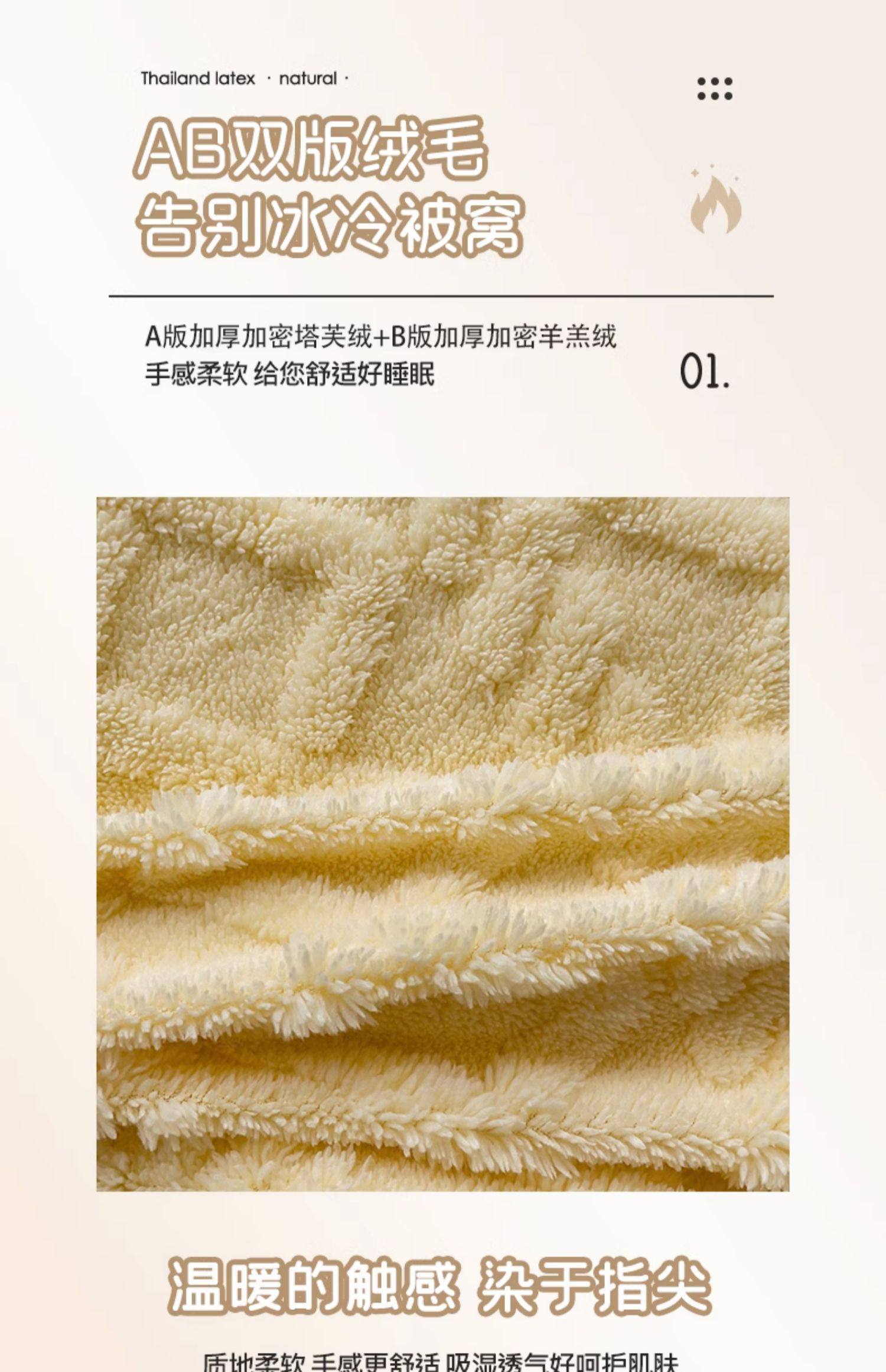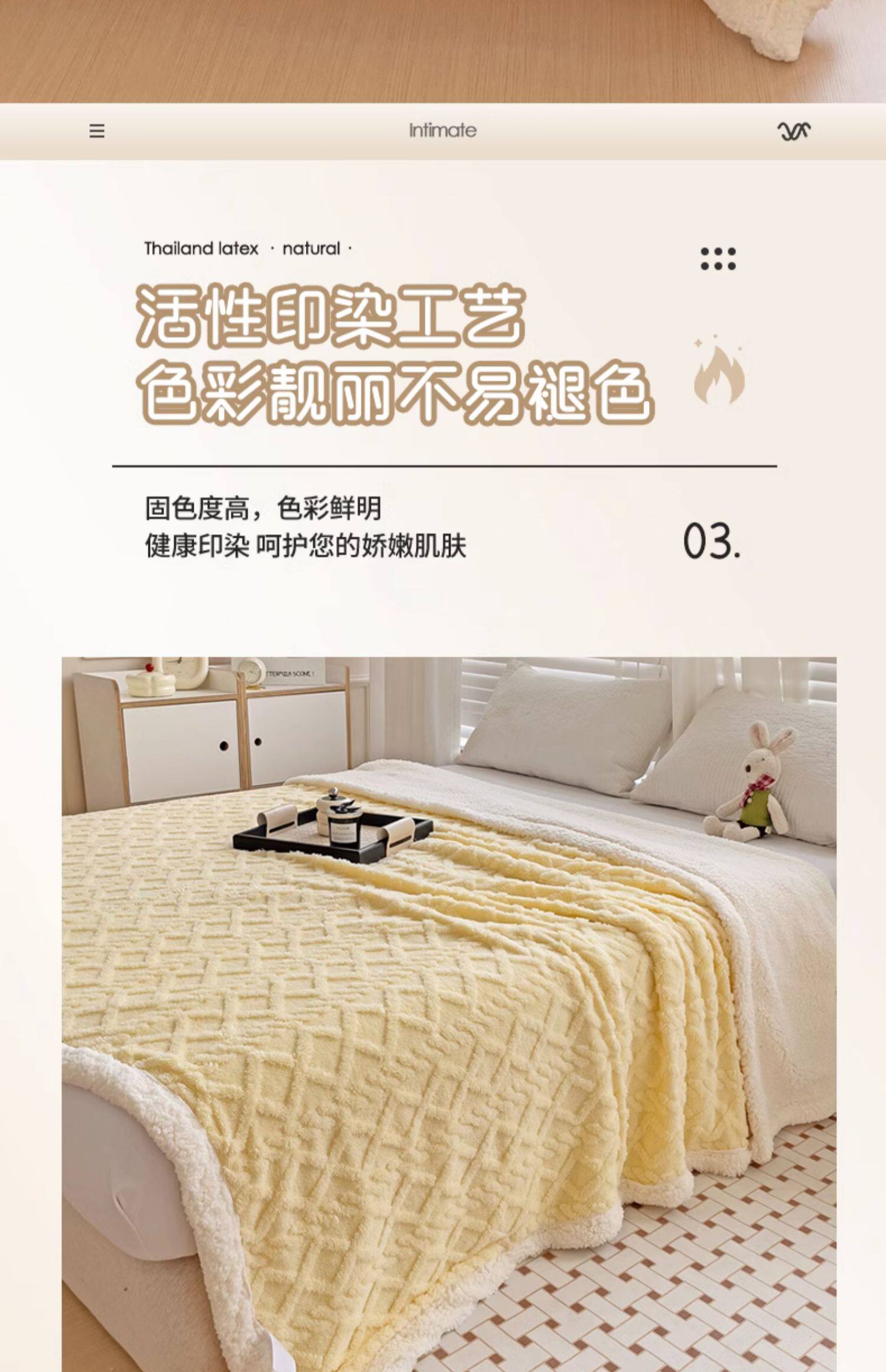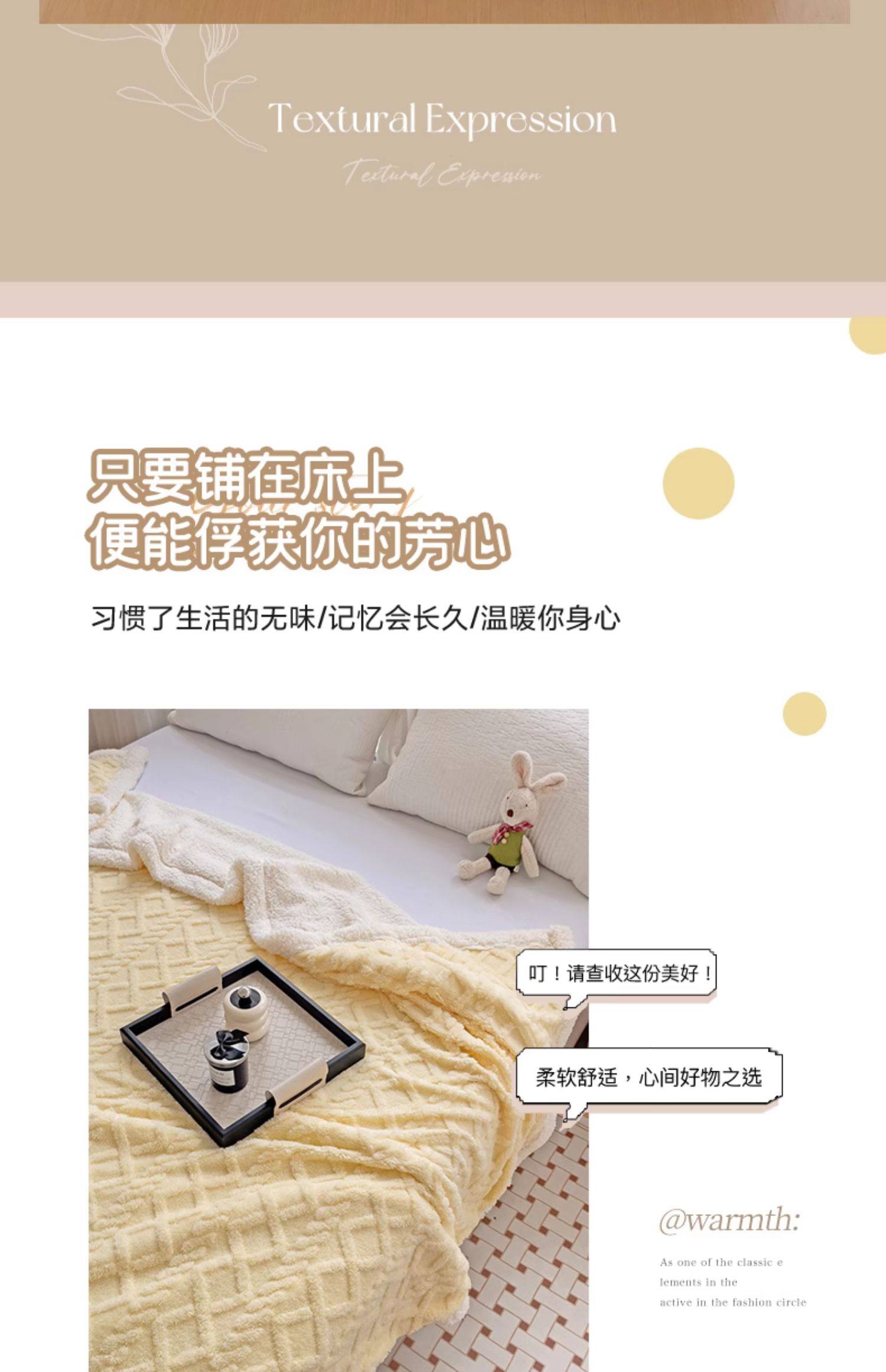 米白【塔肤绒毛毯加厚不掉毛不掉色】