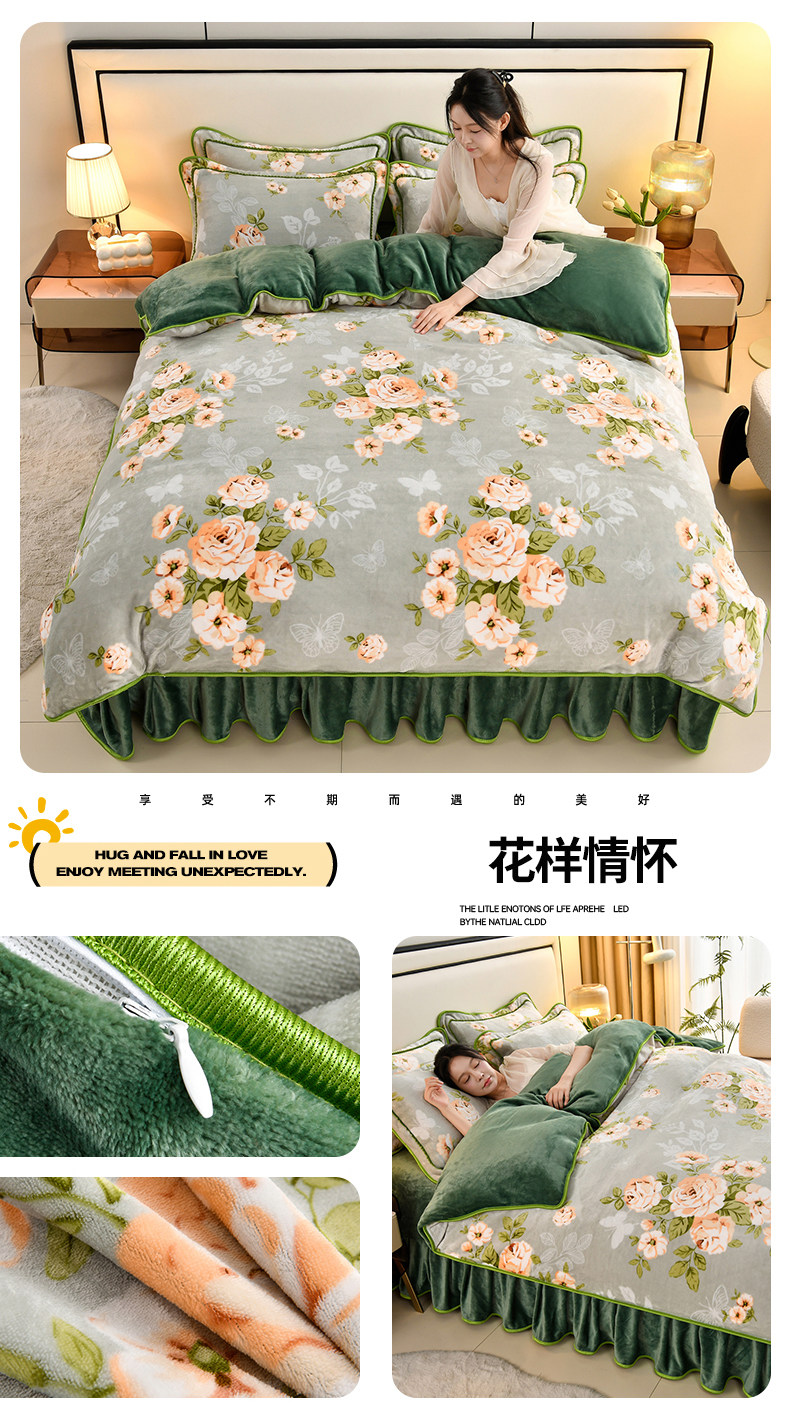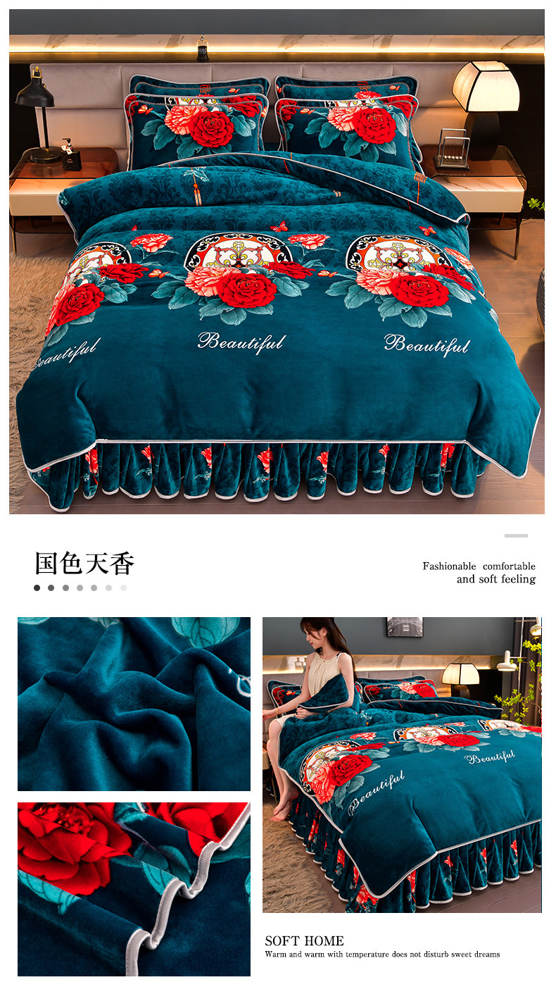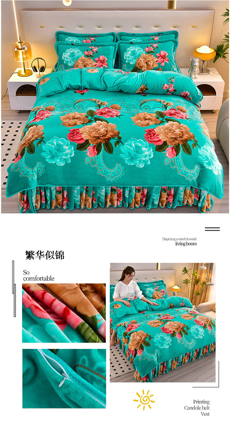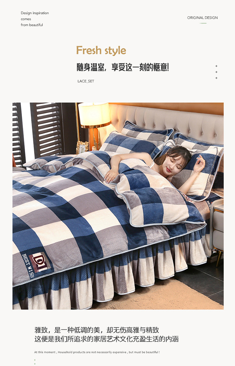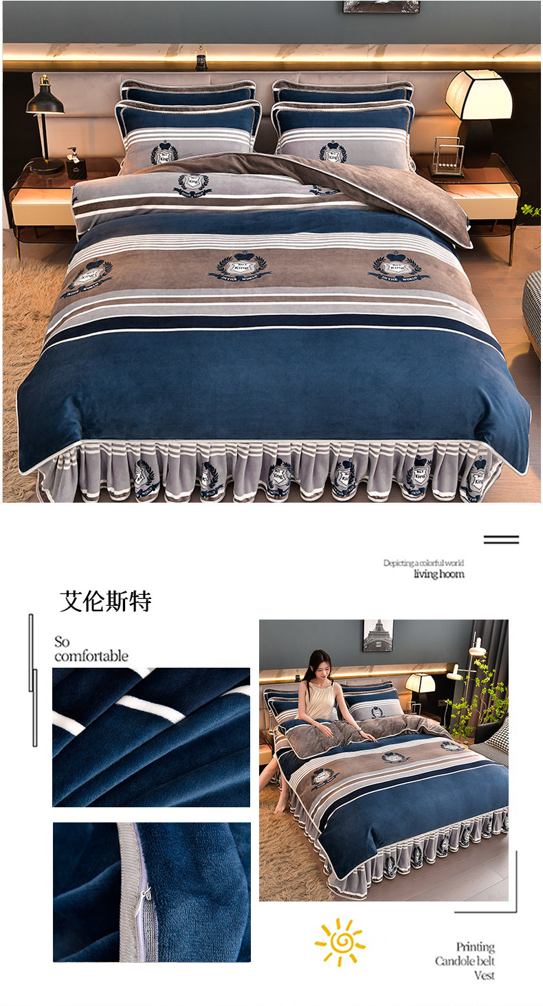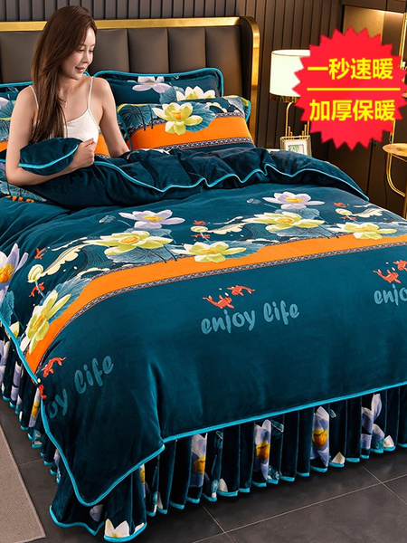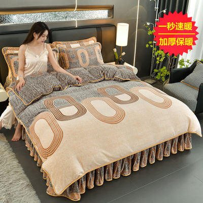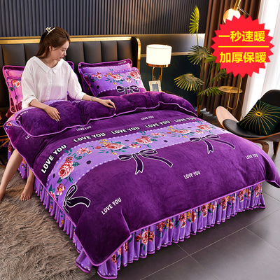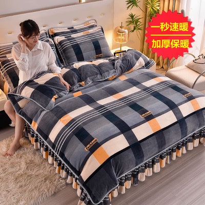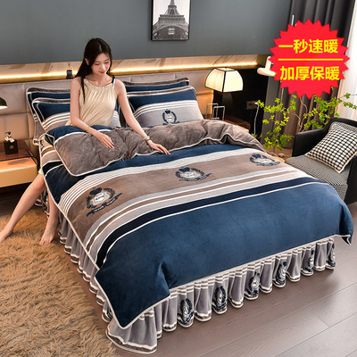 加厚牛奶绒四件套珊瑚绒法兰绒毛绒被套双面绒床单裙保暖被罩冬款