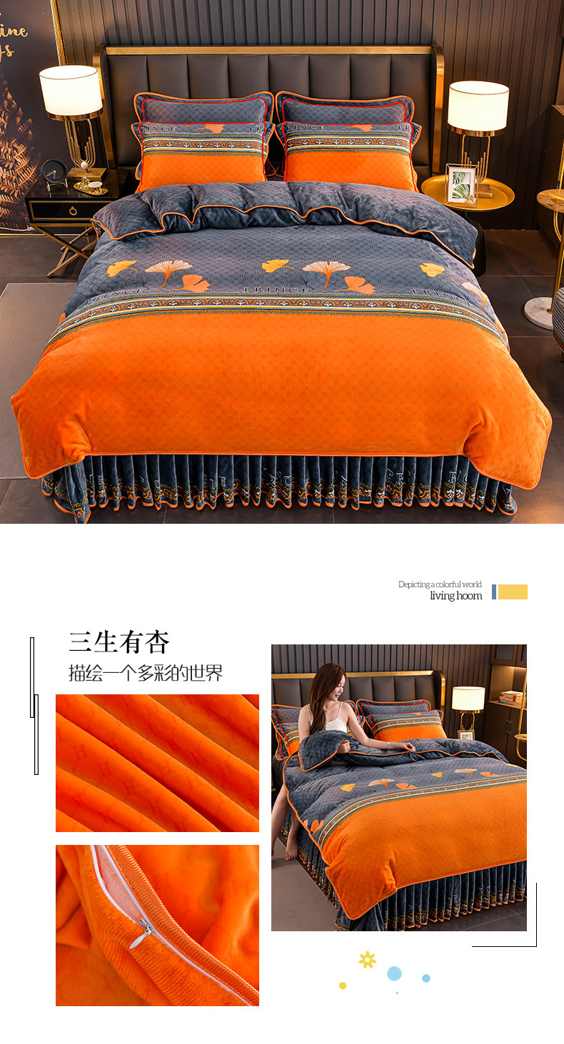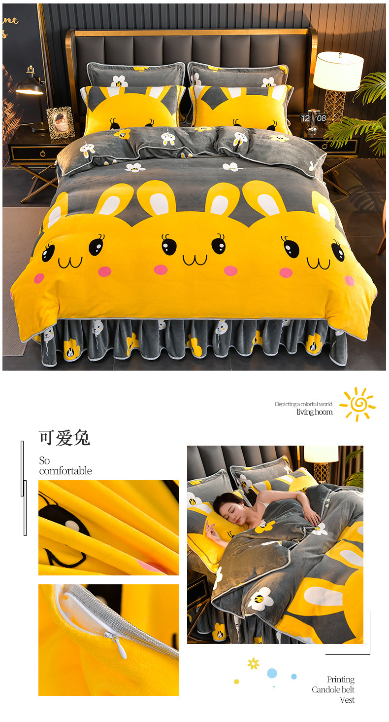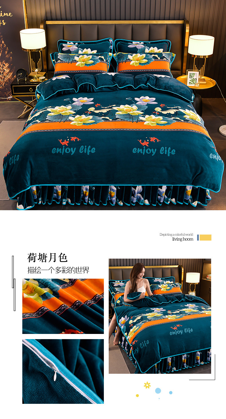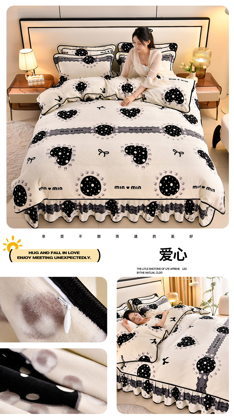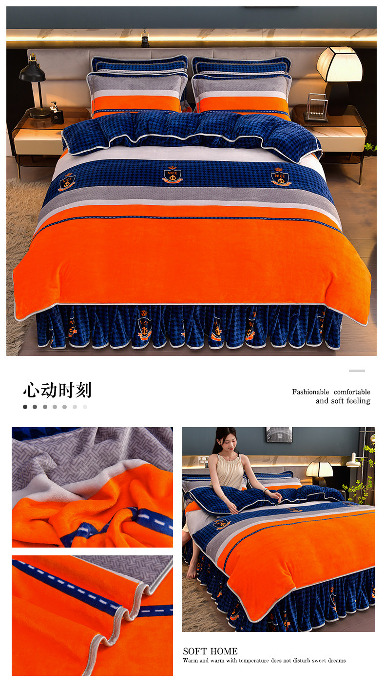 加厚牛奶绒四件套珊瑚绒法兰绒毛绒被套双面绒床单裙保暖被罩冬款