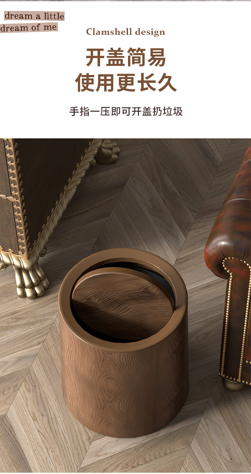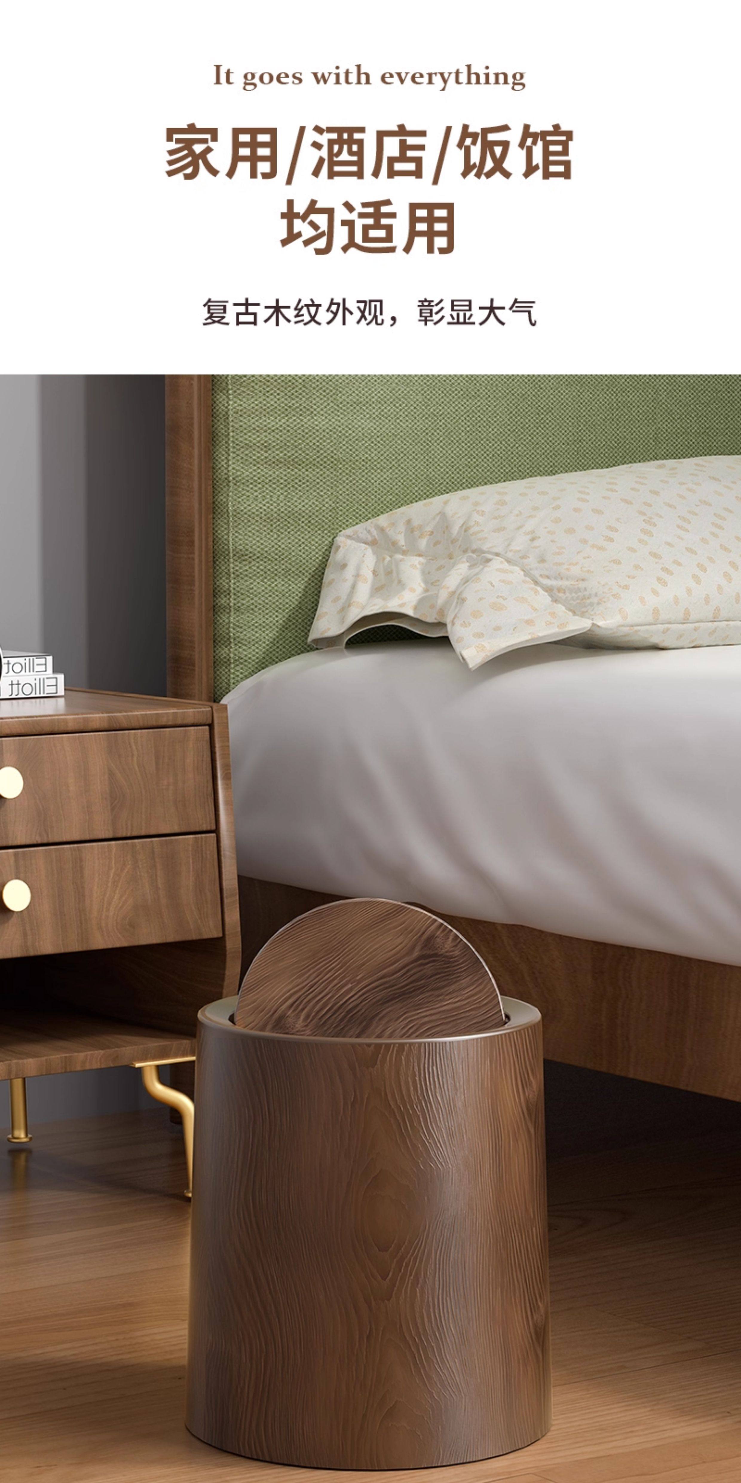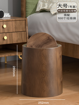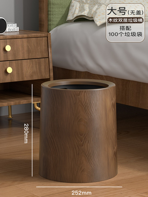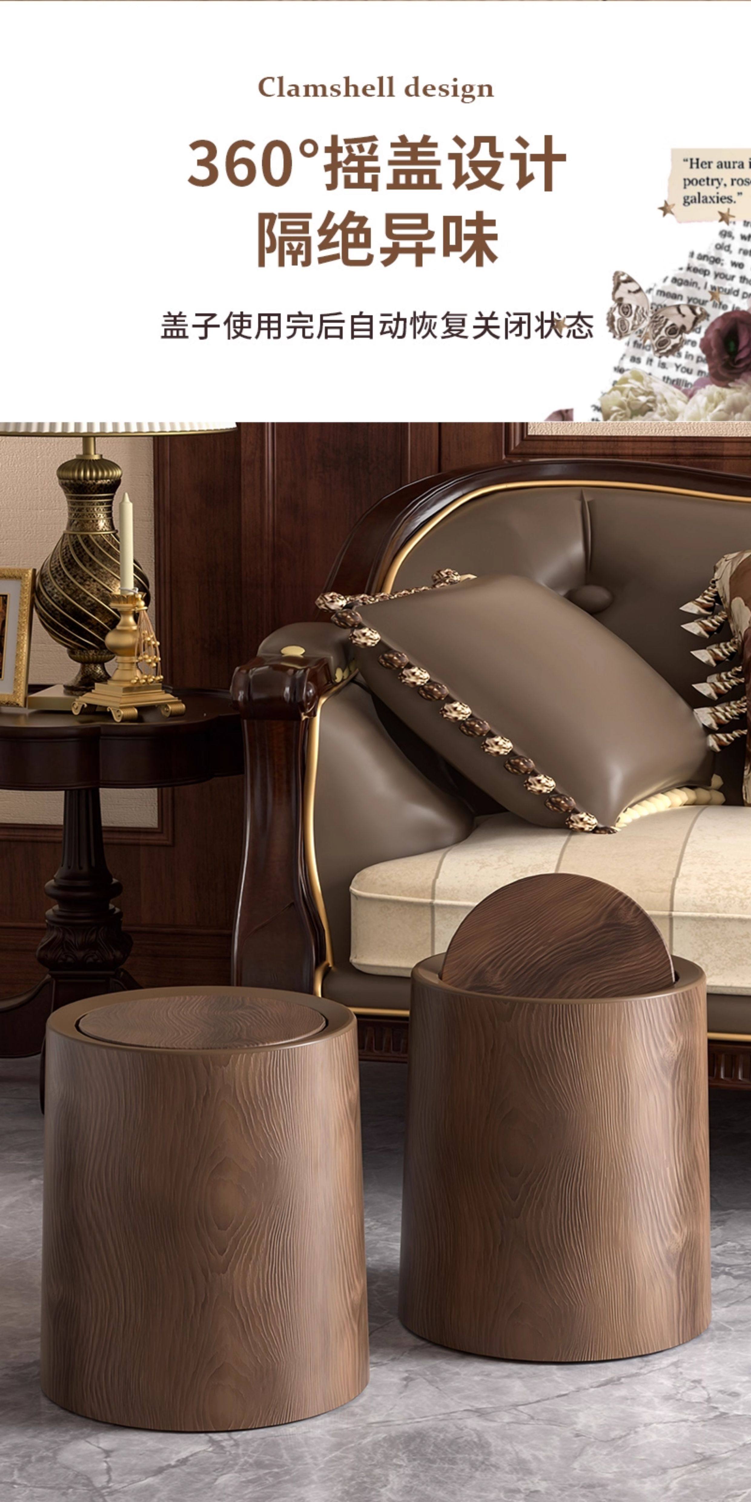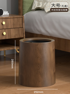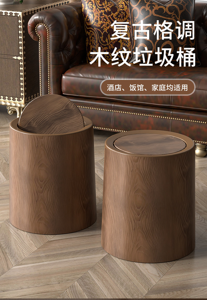 复古仿木纹垃圾桶家用新款大容量客厅厨房厕所办公室商用中式纸篓