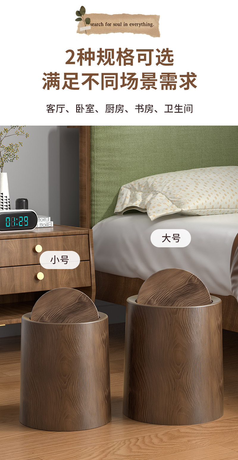 【升级加盖】新中式仿木纹-大号+10卷200只垃圾袋