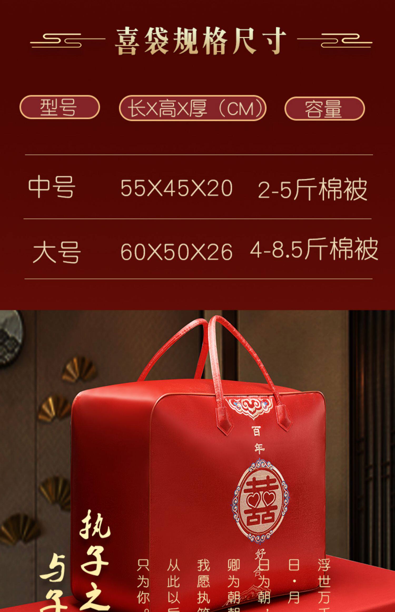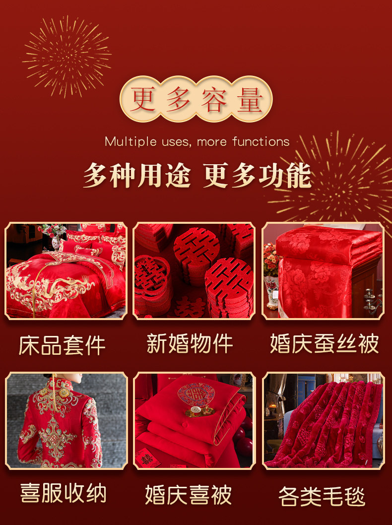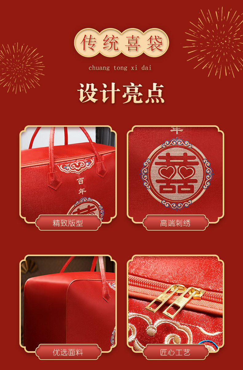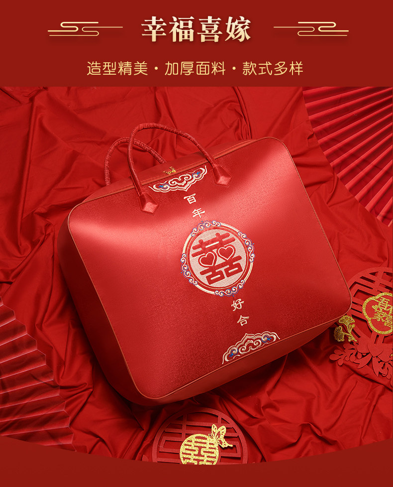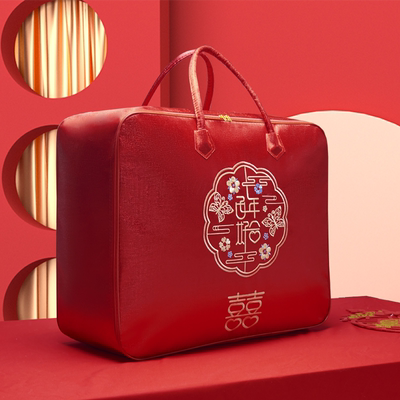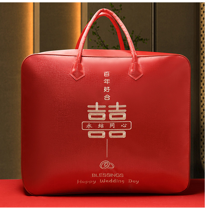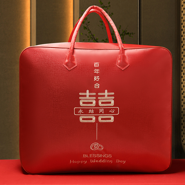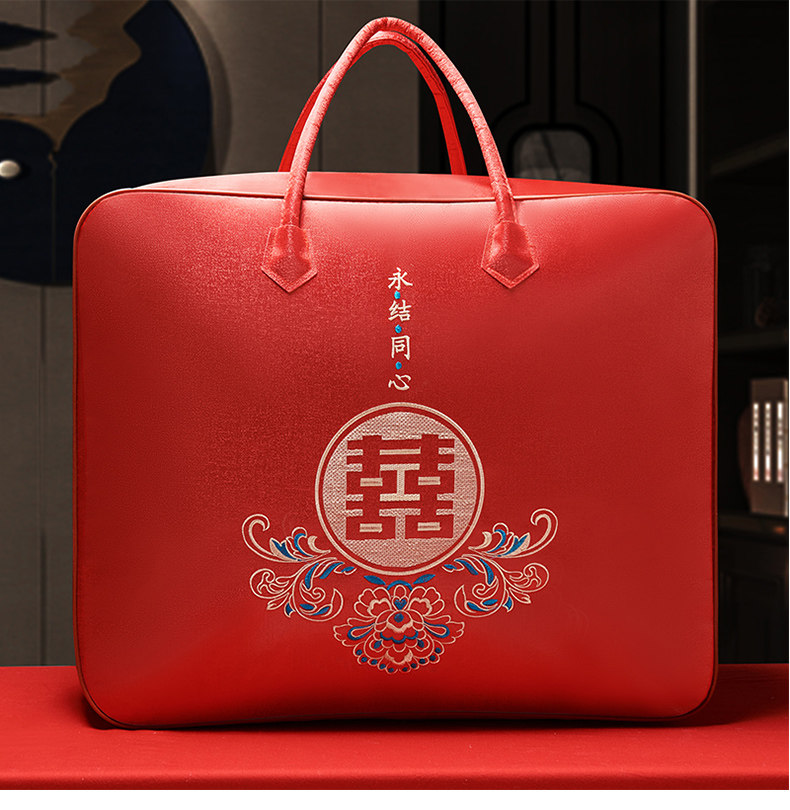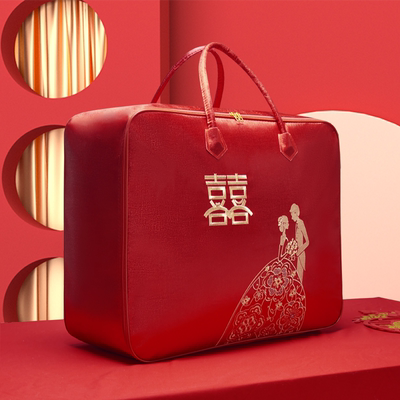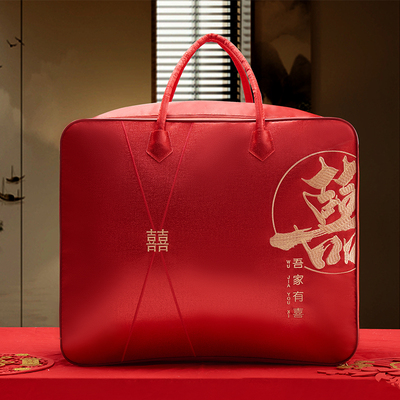 结婚陪嫁被子喜被收纳袋红色婚庆四件套被褥手提袋棉花被包装袋子