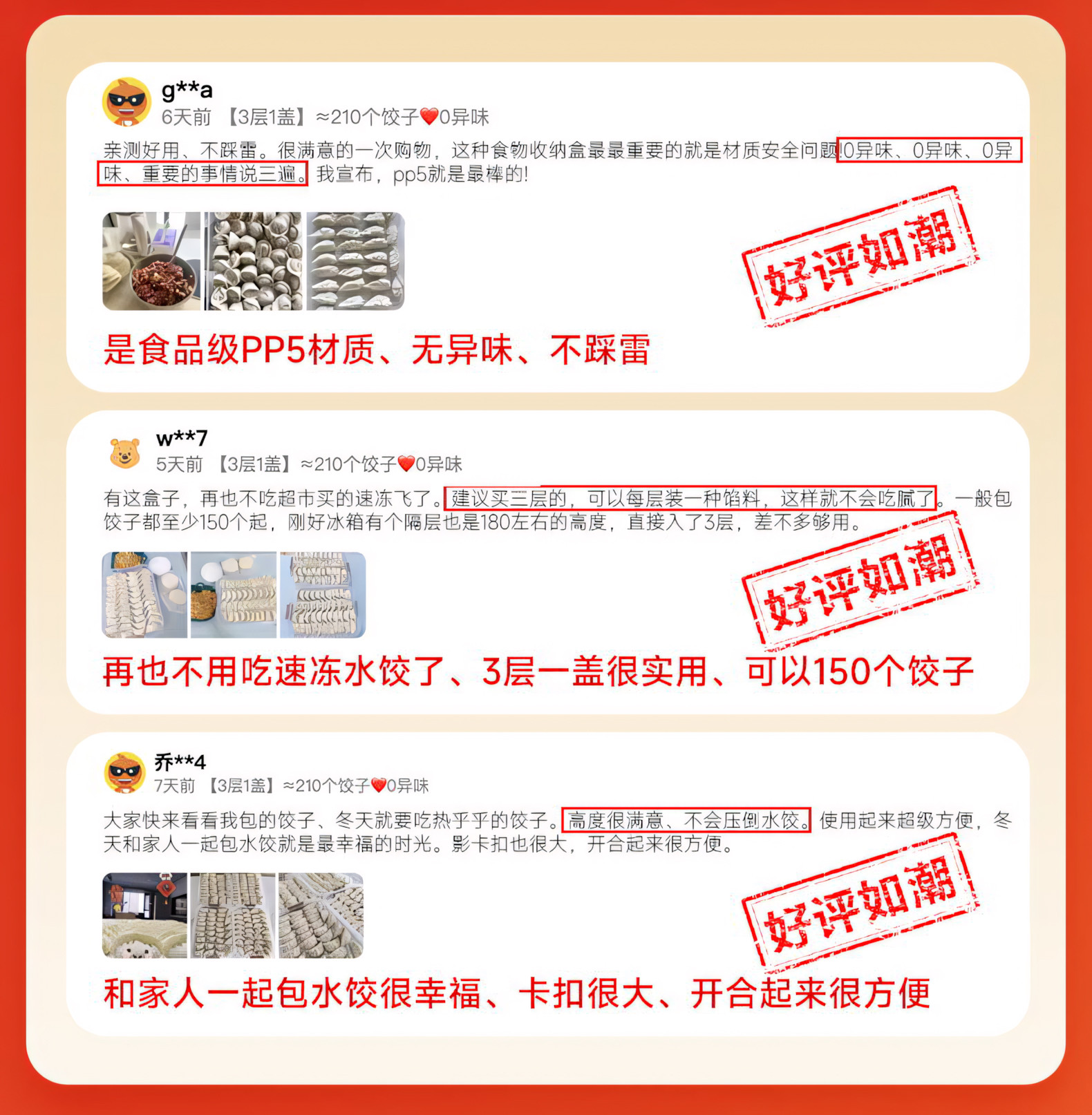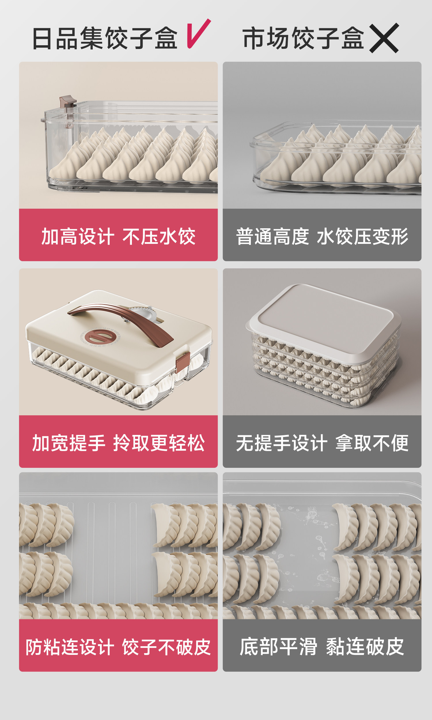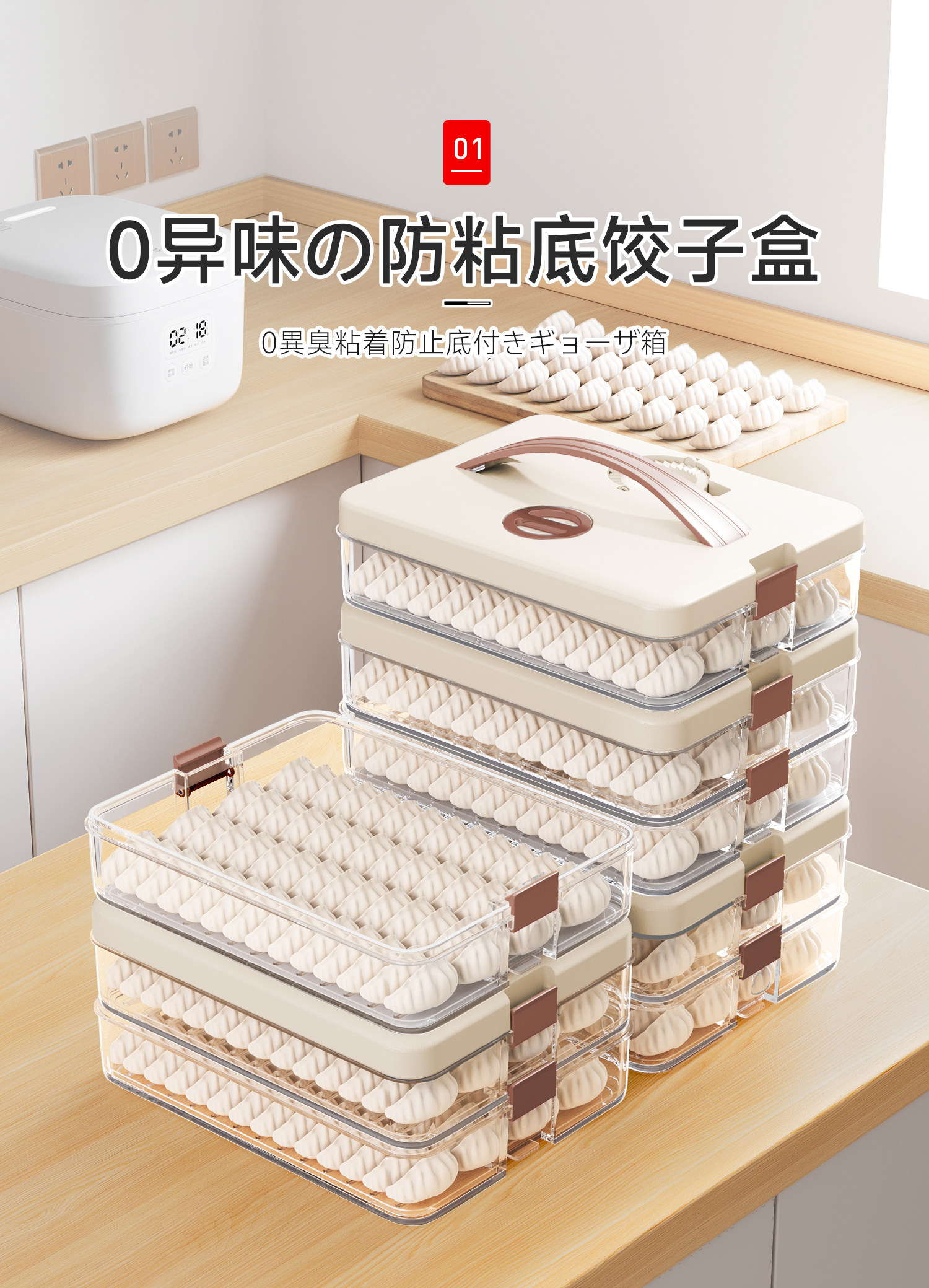 第二代❤️奶油白【3层1盖】≈210个饺子❤️0异味⭐赠:包饺子神器