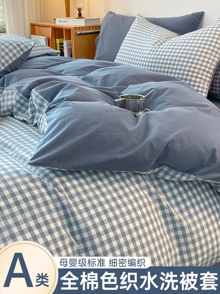 A类无印风纯棉全棉被套单件褥子套学生宿舍单人被罩三件套150x200