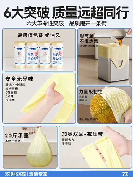抽绳特大号【5卷75只】62*65cm特厚4丝-奶油黄