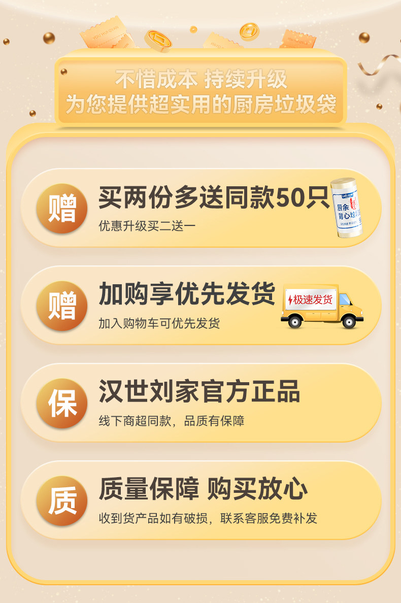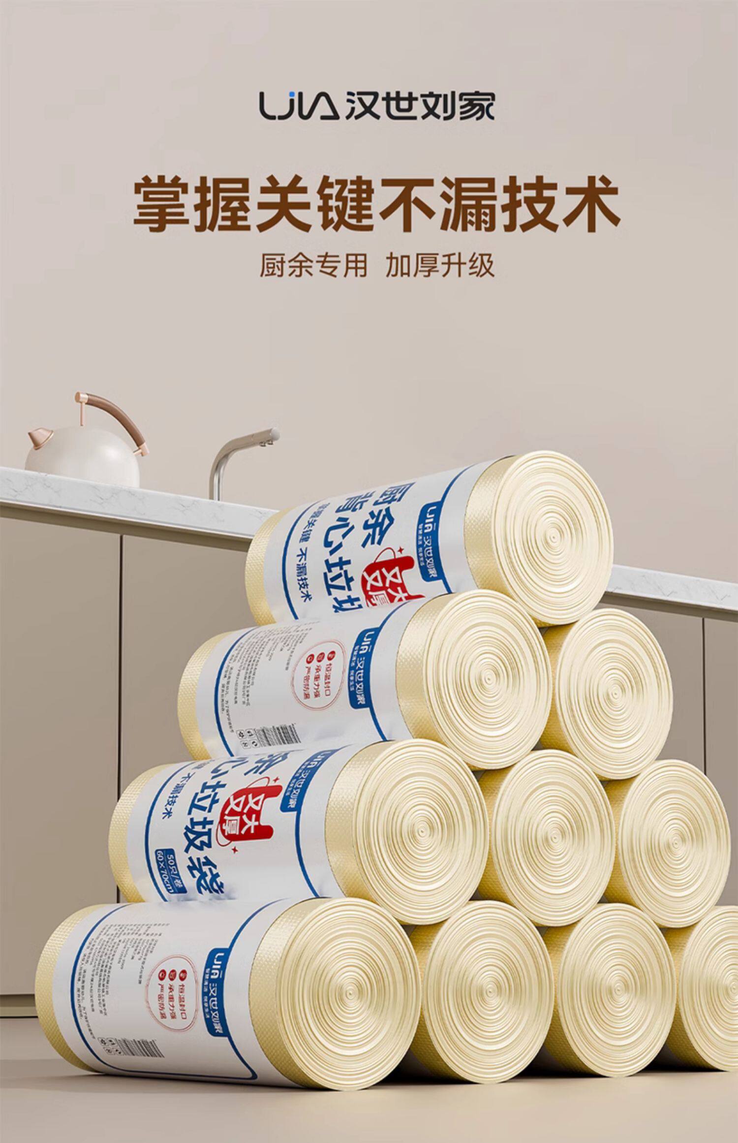 汉世刘家垃圾袋家用手提式加厚大号厨房桶背心商用办公室用实惠装