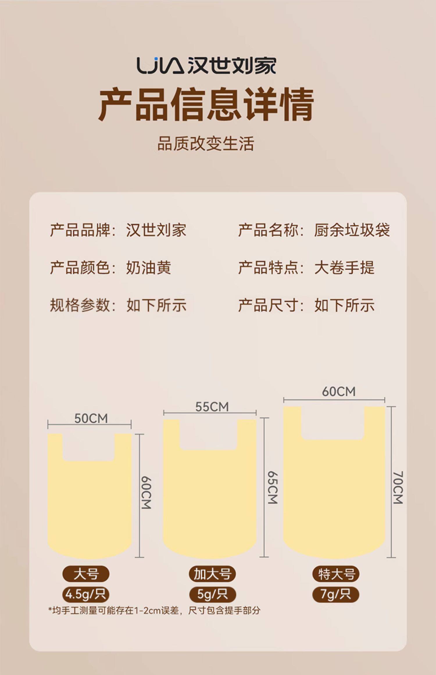 抽绳特大号【3卷45只】62*65cm特厚4丝-奶油黄