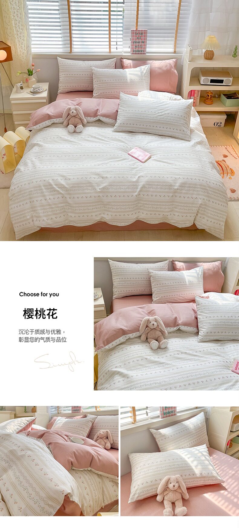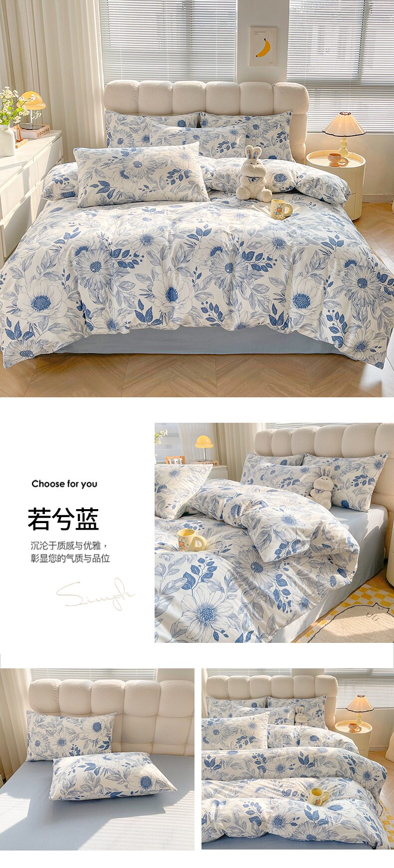 1.5米床笠款四件套:【200*230cm被套+150*200cm床笠+枕套一对】