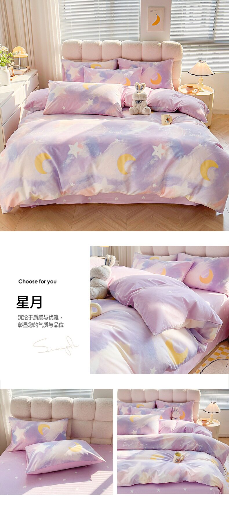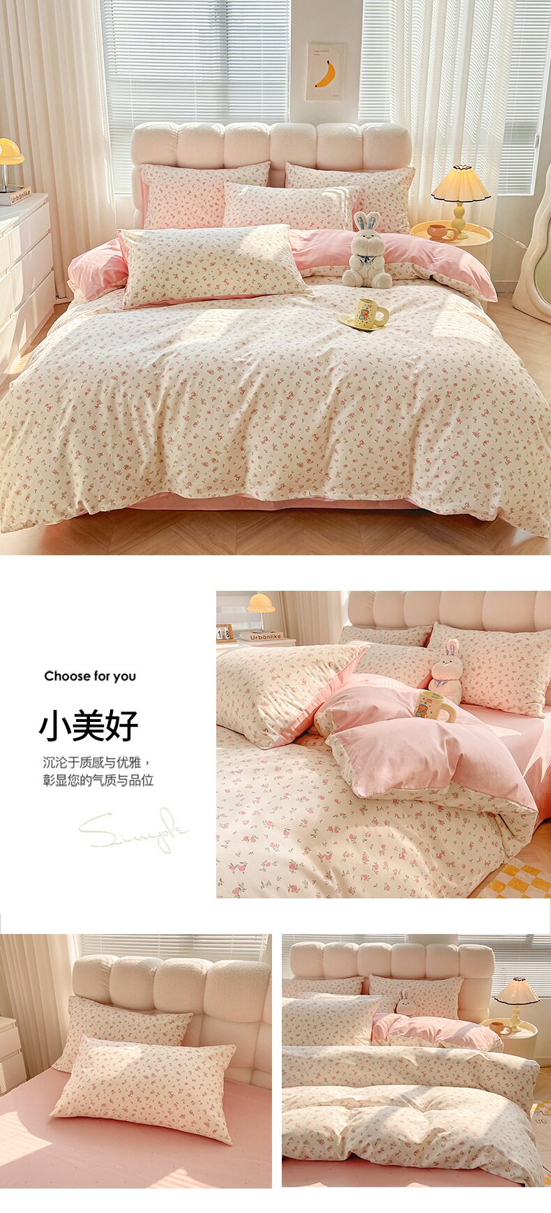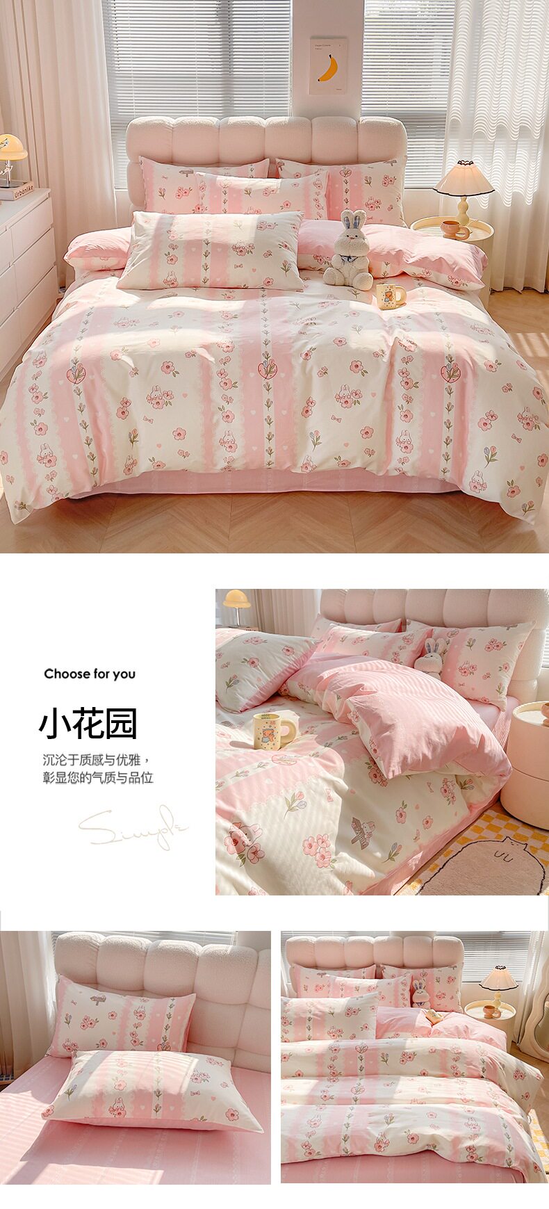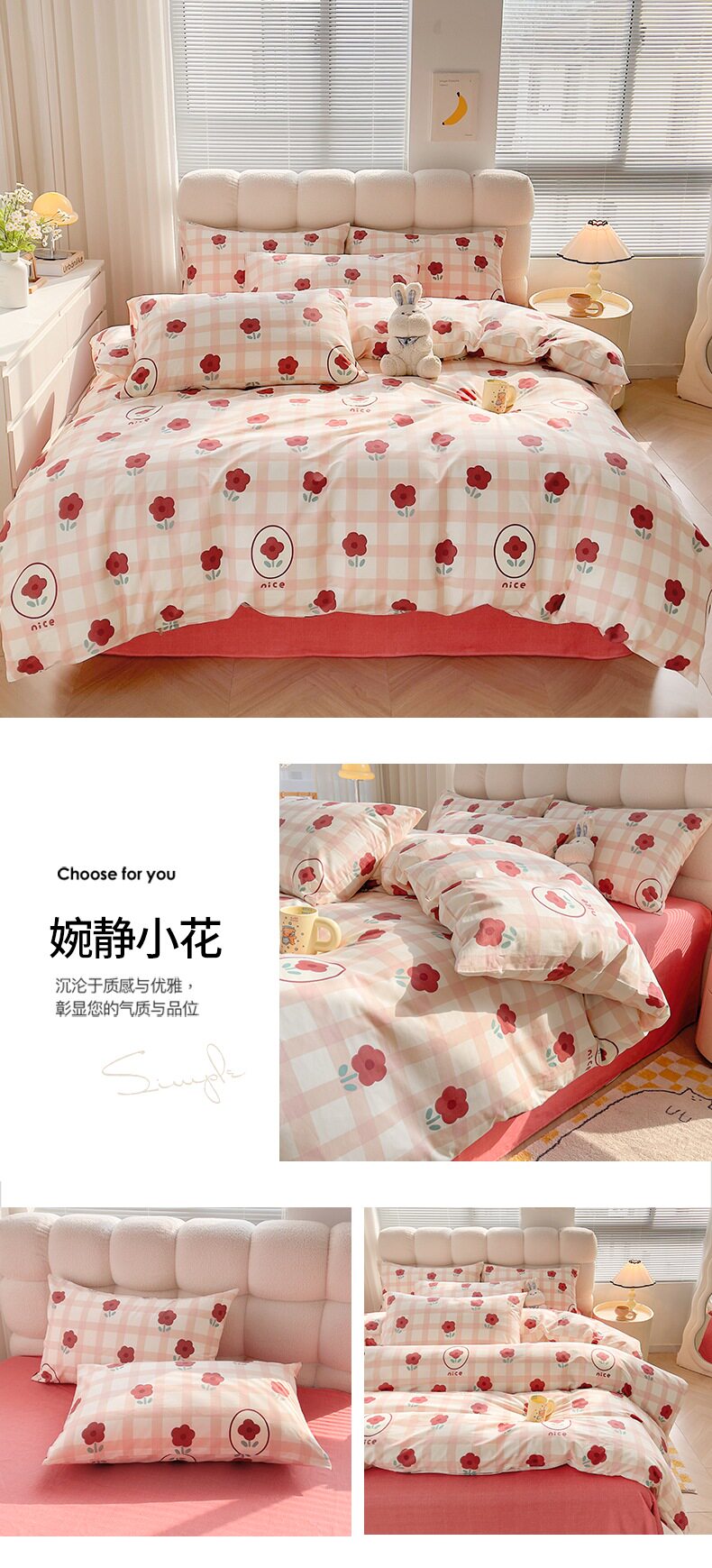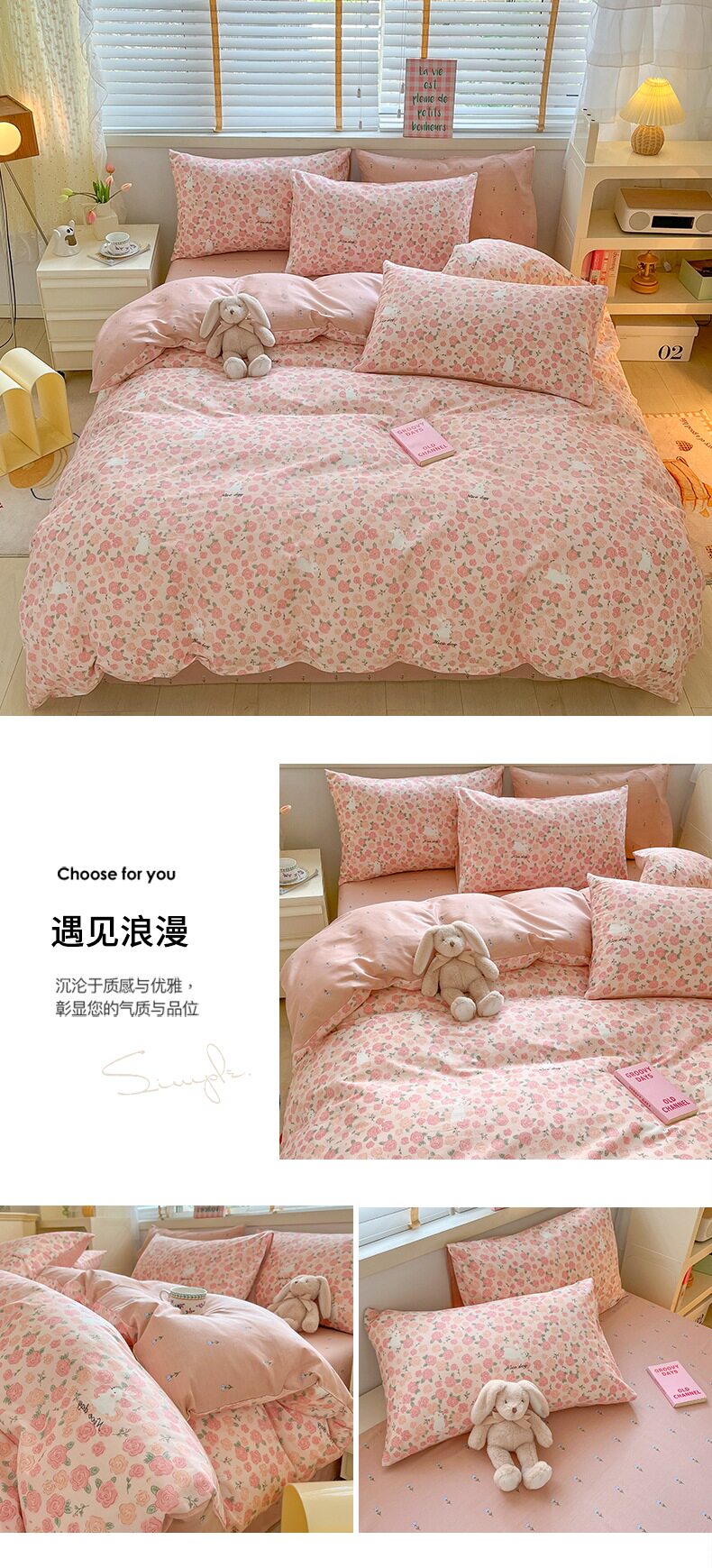 1.8米被套加大款床笠四件套:【220*240cm被套+180*200cm床笠+枕套一对】