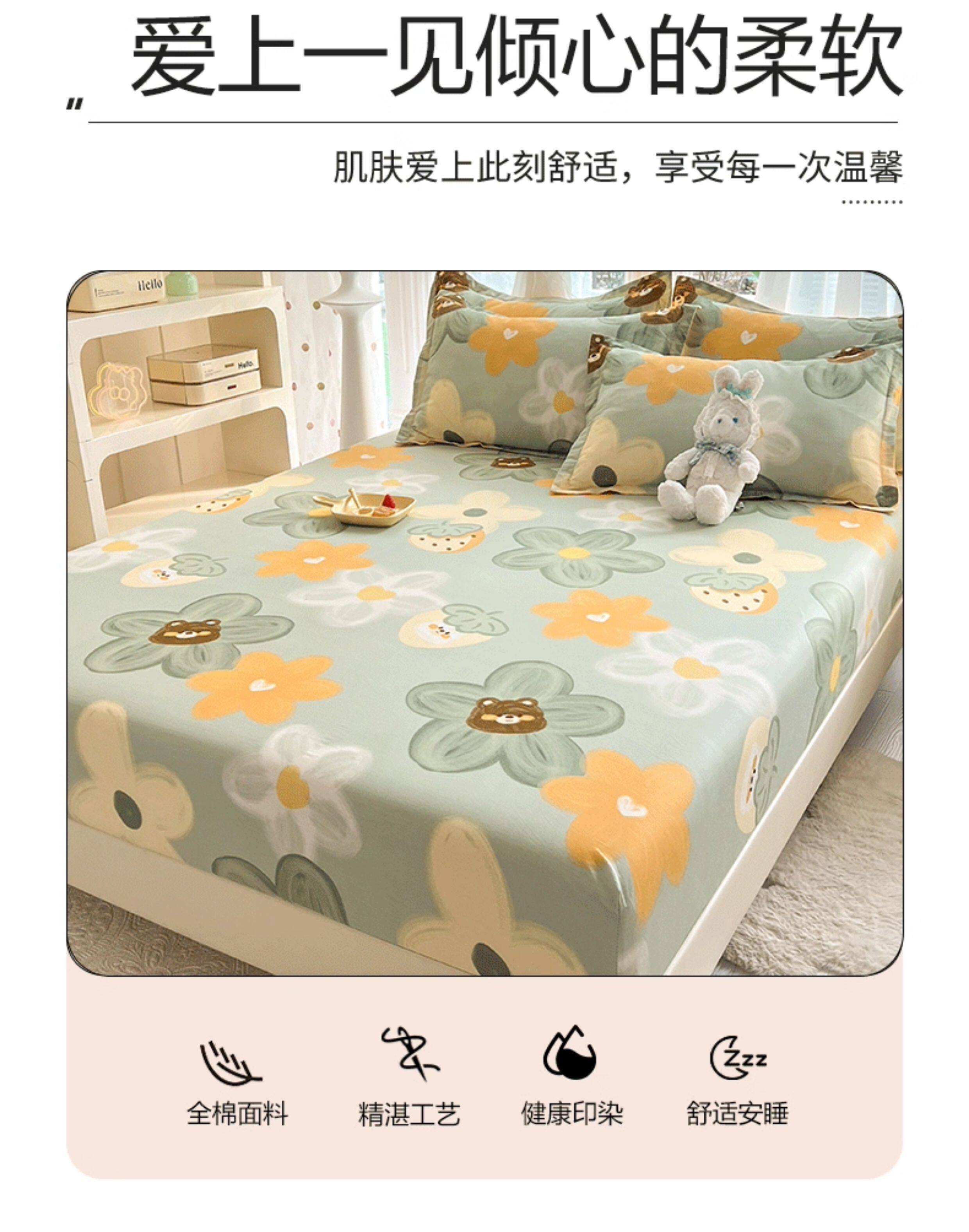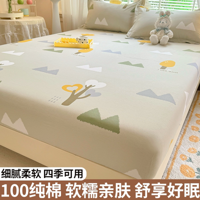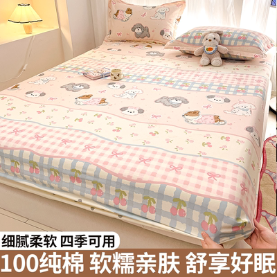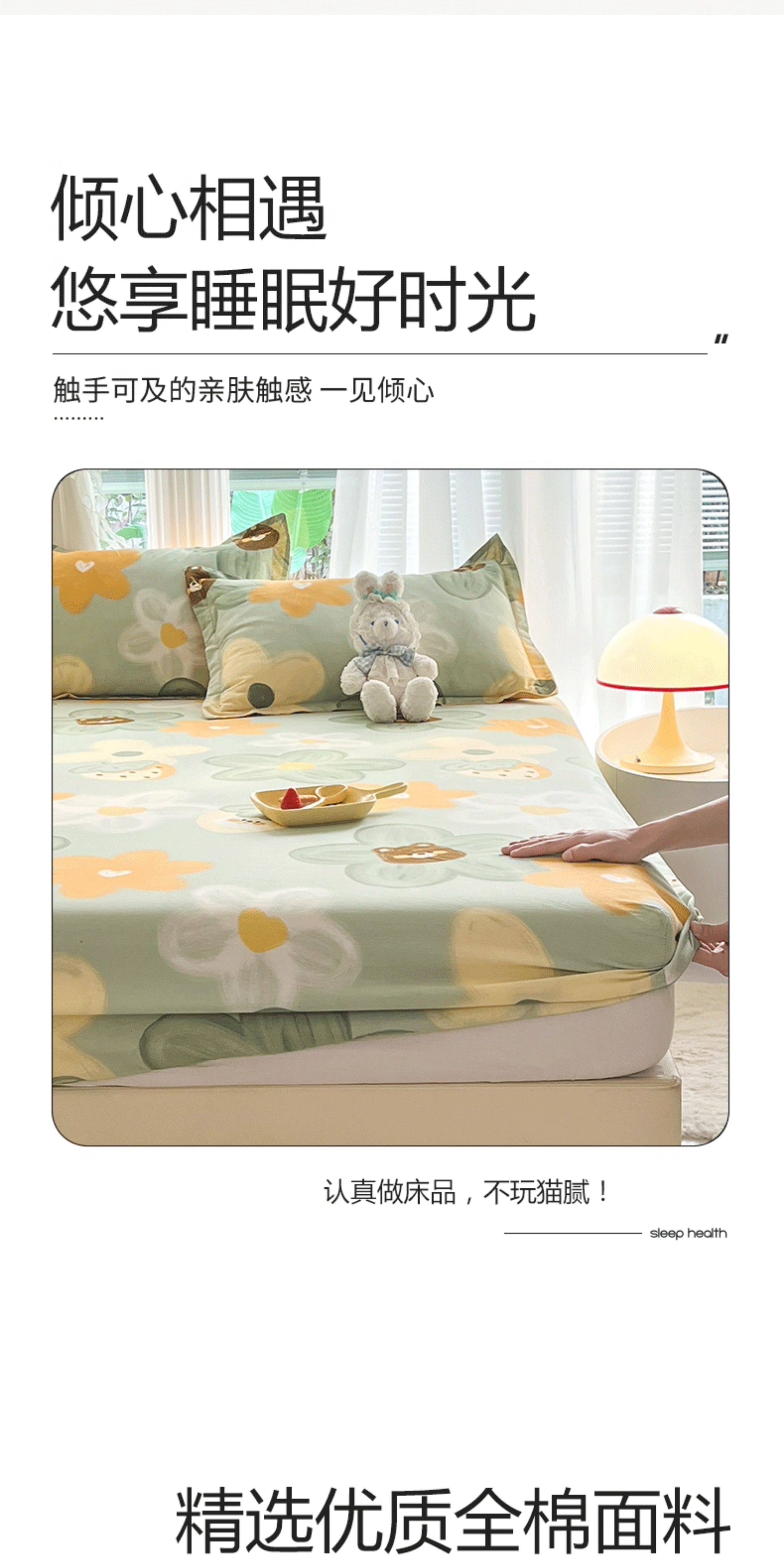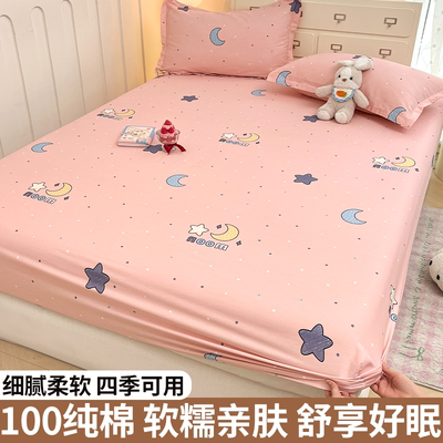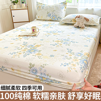 床笠纯棉100全棉床罩单件席梦思床垫套保护罩防滑固定床单防尘罩