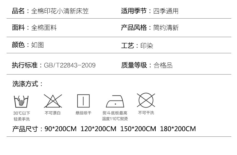床笠单件:120x200cm【适合5-25cm床垫使用】