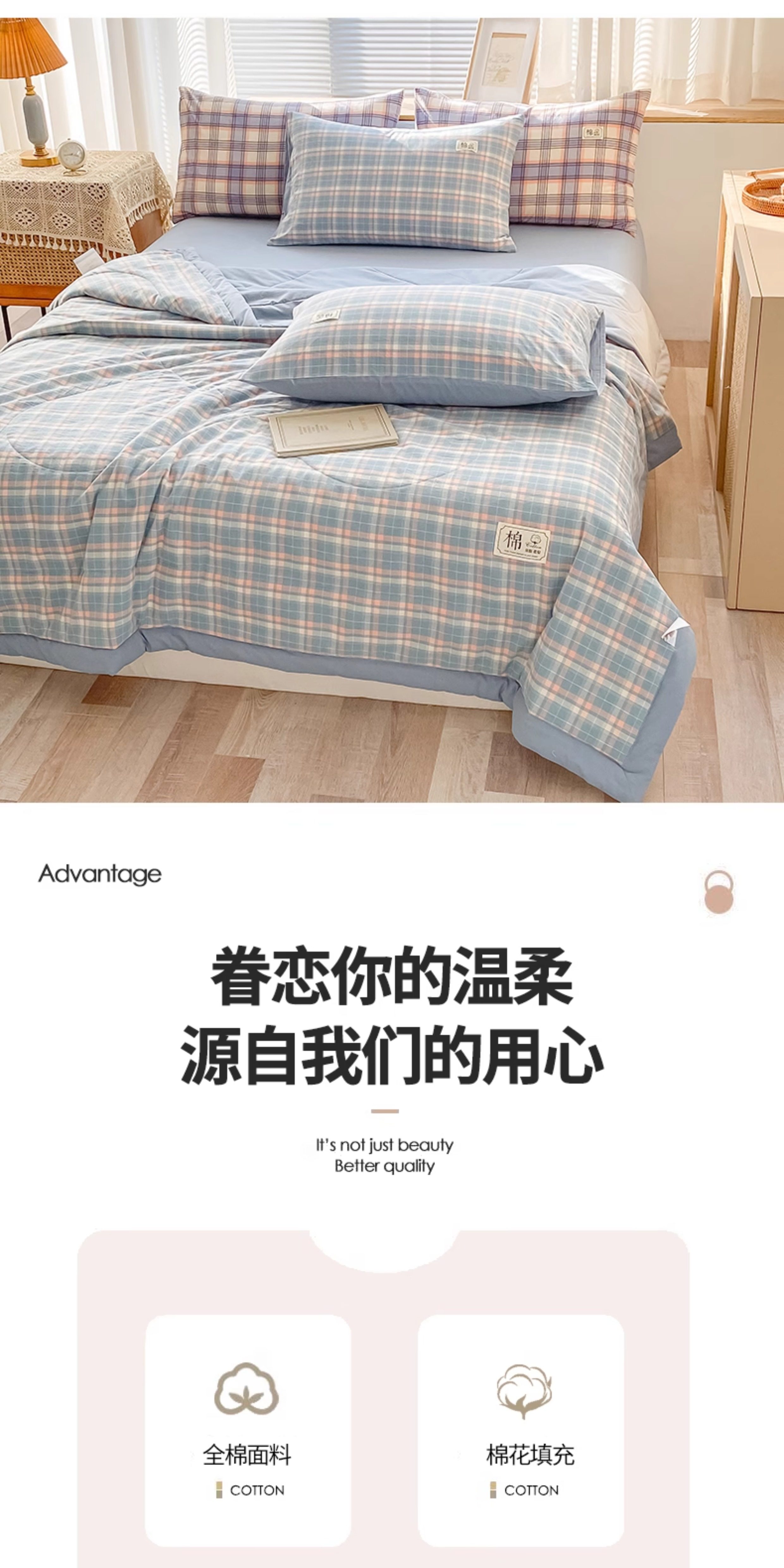 无印良品A类里外全棉春秋被褥冬被子纯棉棉花空调夏凉被学生宿舍