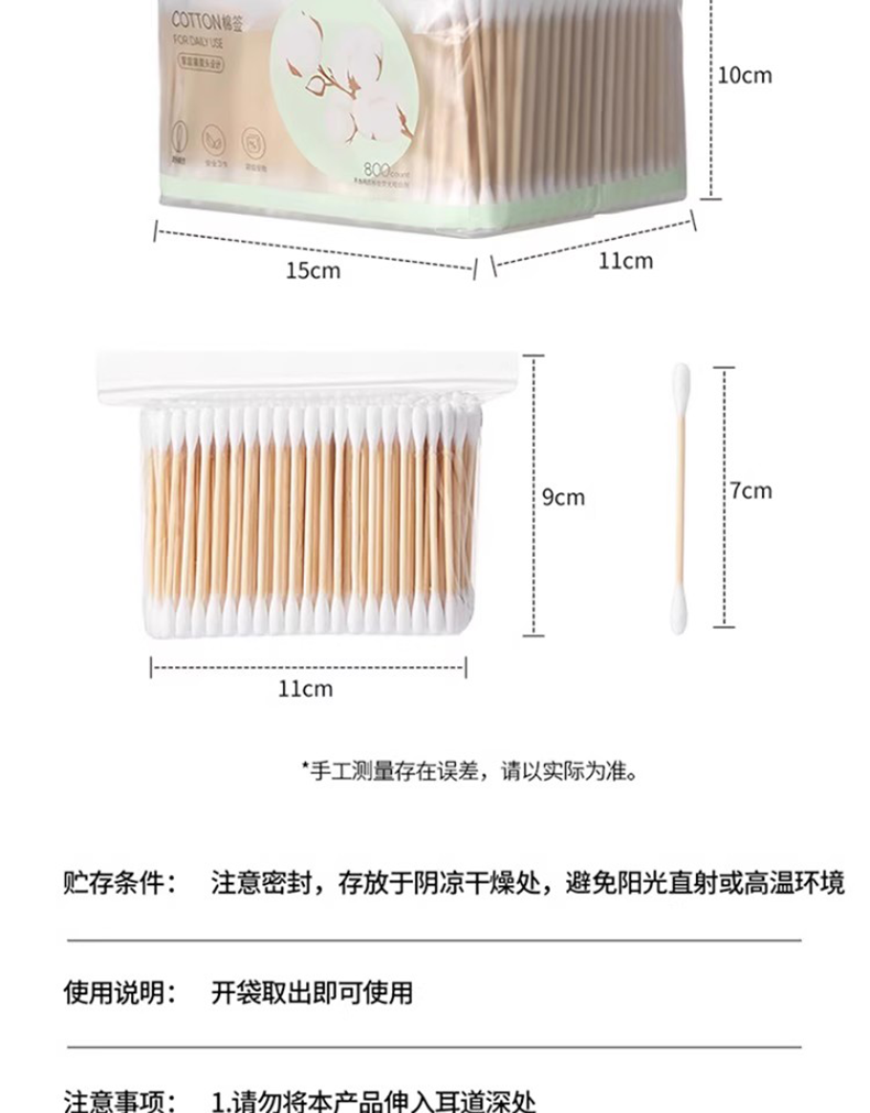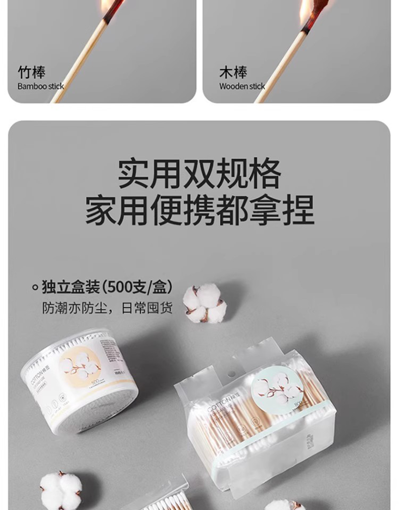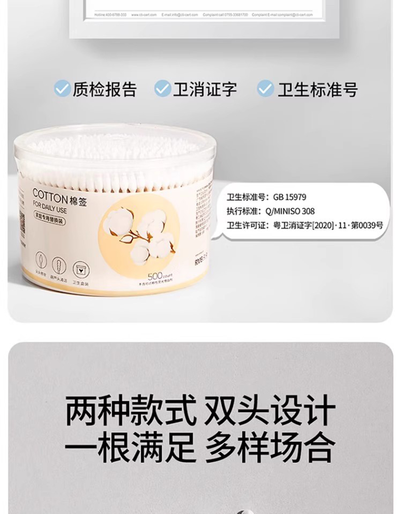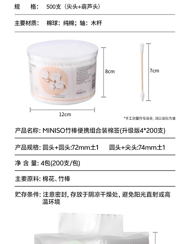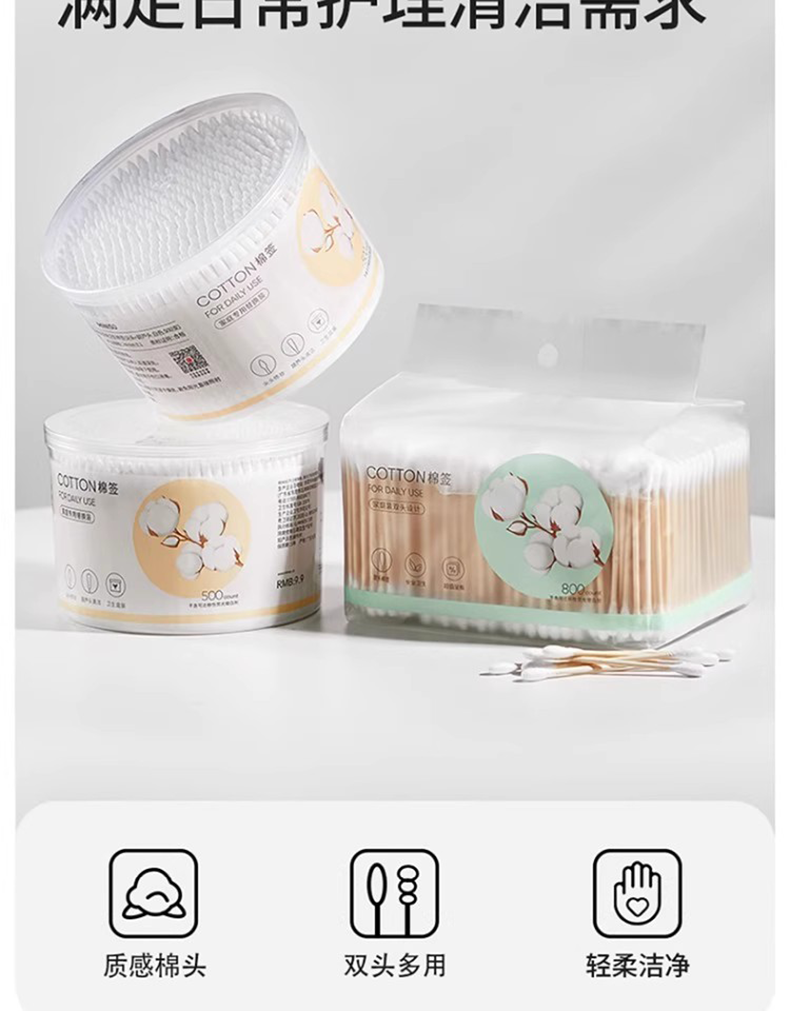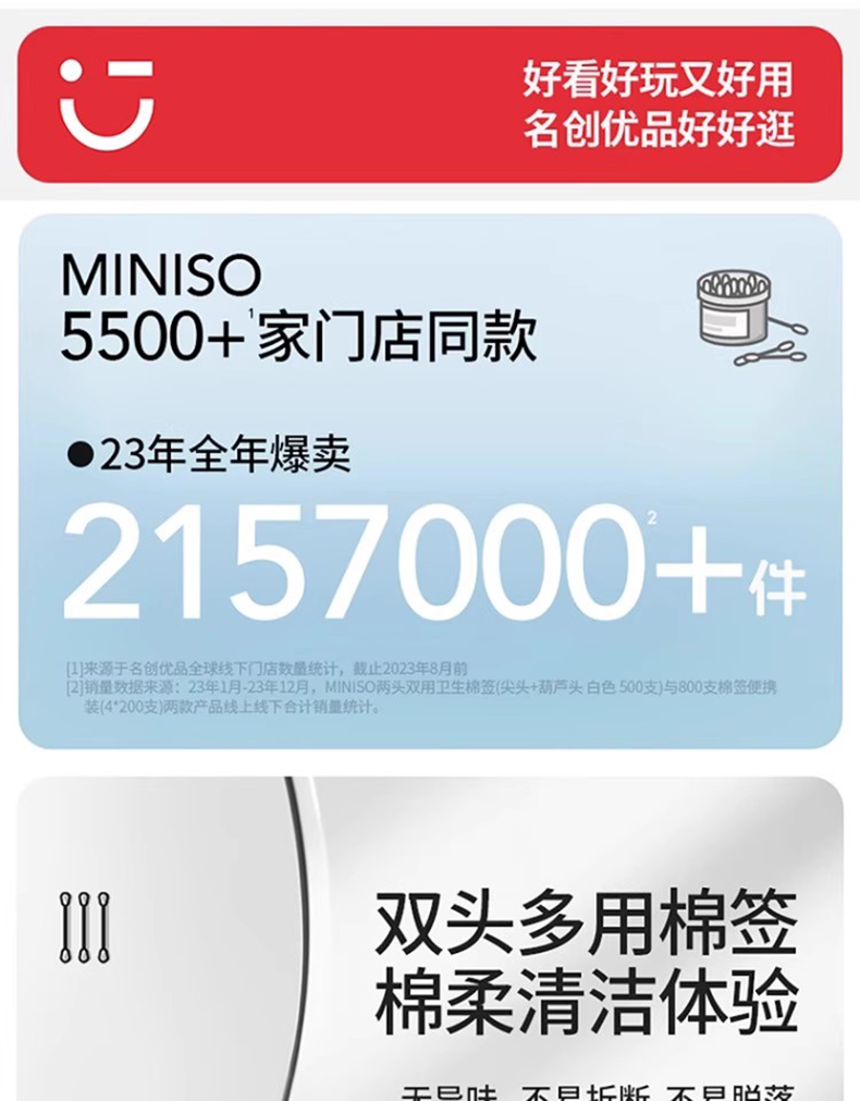 MINISO名创优品木棒双头棉签棒掏耳朵专用化妆尖头螺旋大人棉花棒