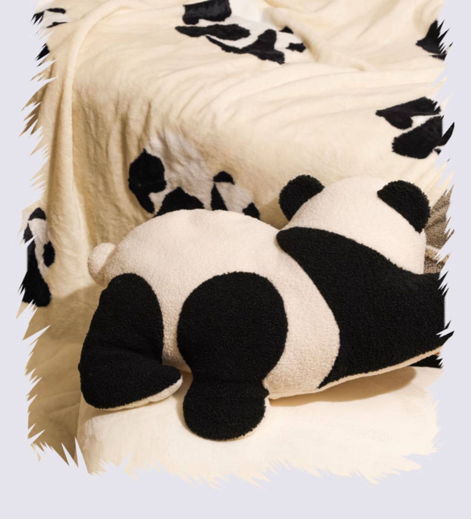 tbh野兽派家居熊猫嘭嘭二合一法兰绒暖香毯子抱枕车载车内靠枕女