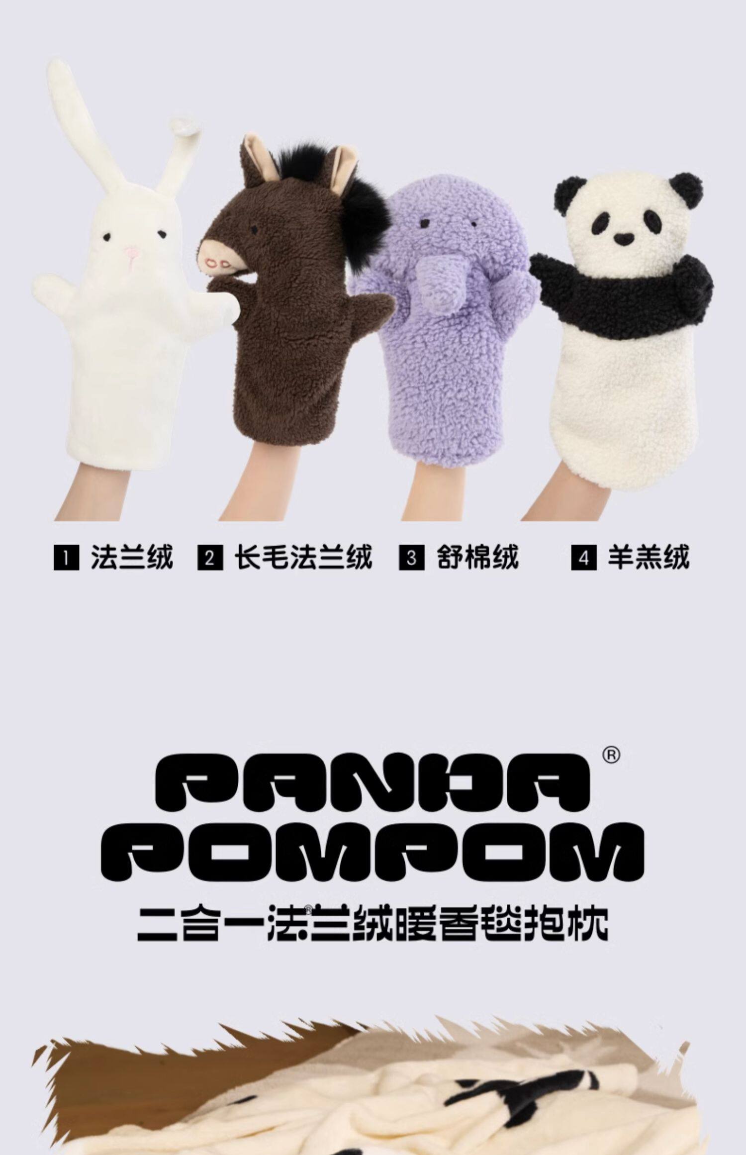 熊猫嘭嘭 PANDA POMPOM 二合一法兰绒暖香毯/抱枕
