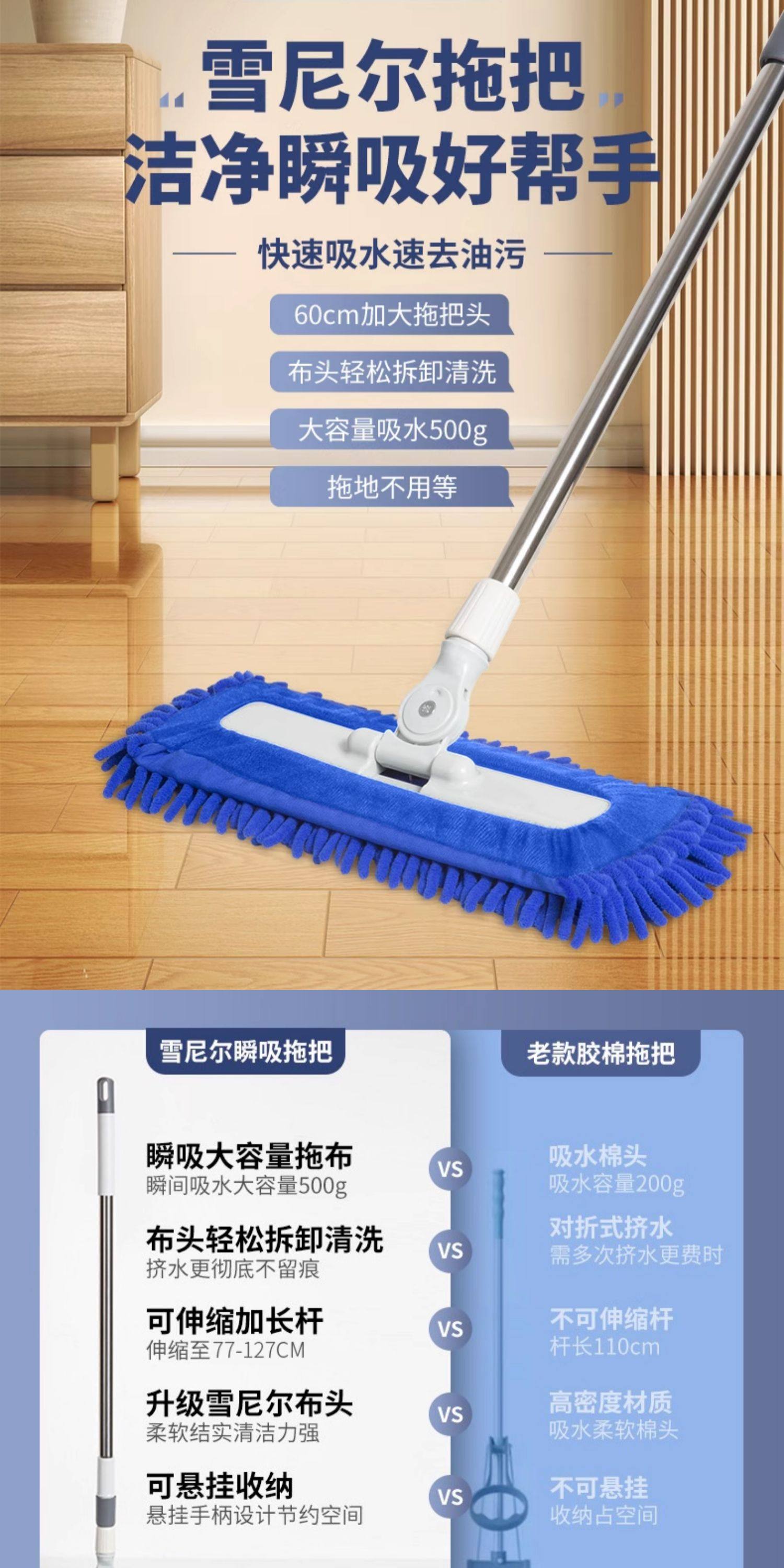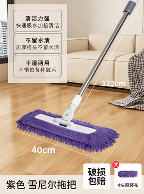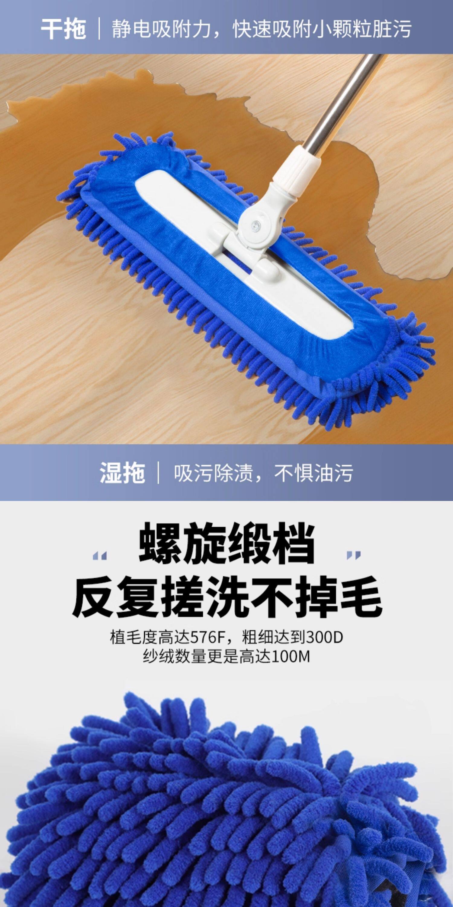雪尼尔拖把干湿两用平板毛毛虫家用吸水大面积商家政保洁专用尘推