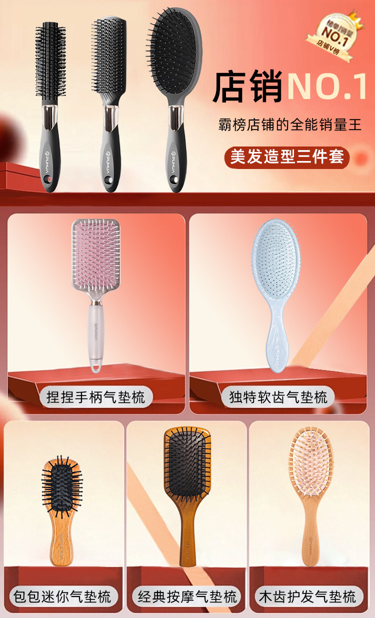 卷发梳+椭圆气垫梳梳【活力橙色】